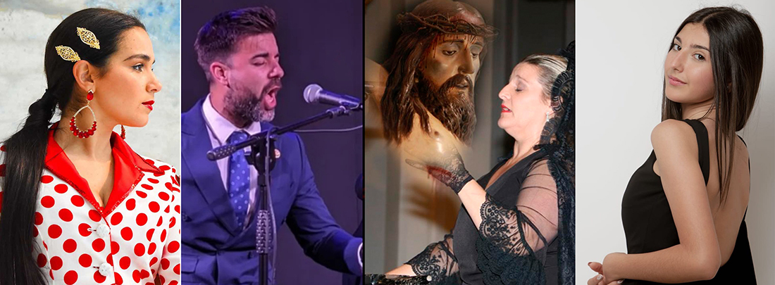 Miriam Cantero Díaz (Cáceres), José Antonio Romero Pérez (Cádiz), Anabel Rodríguez Rosado (Sevilla) y Leonor López Rodríguez (Jaén), por el orden en que aparecen en la fotografía, de izquierda a derecha, optarán a los premios del trigésimo primer concurso nacional que tendrá lugar el Miércoles Santo en la iglesia del Rosario, con entrada gratuita para el público.