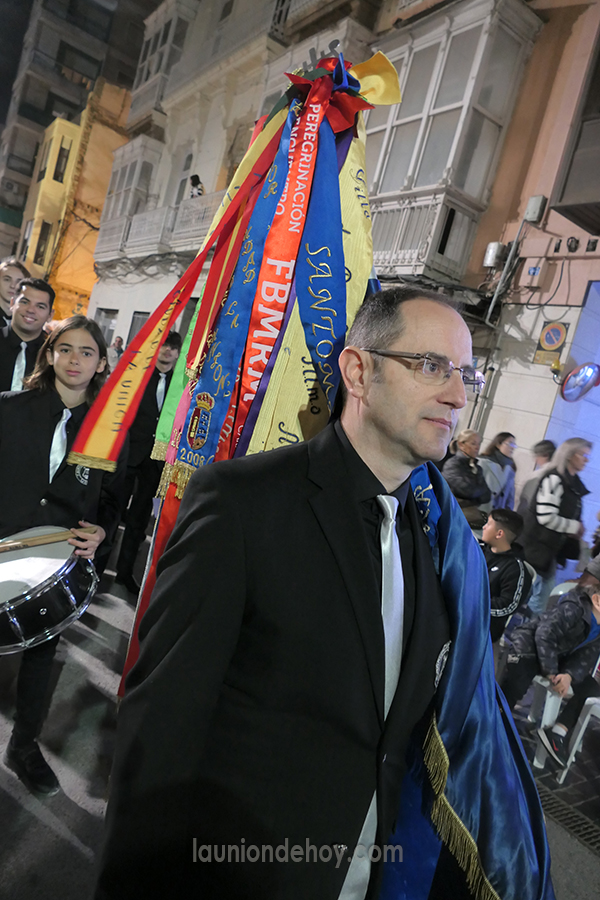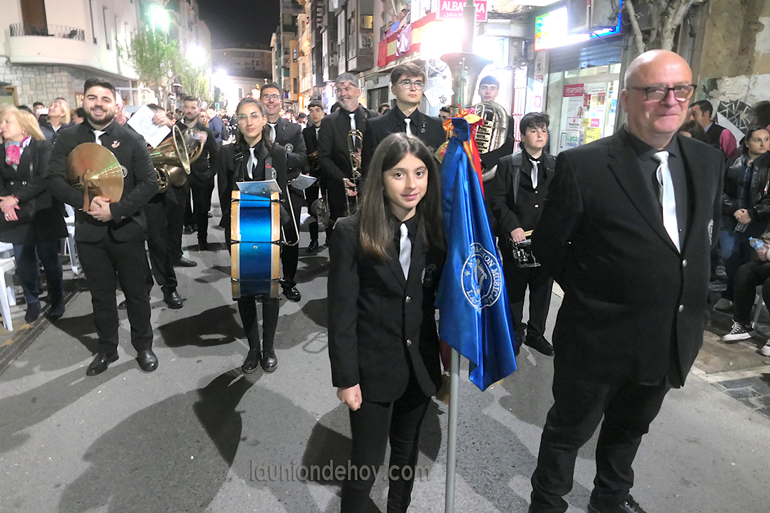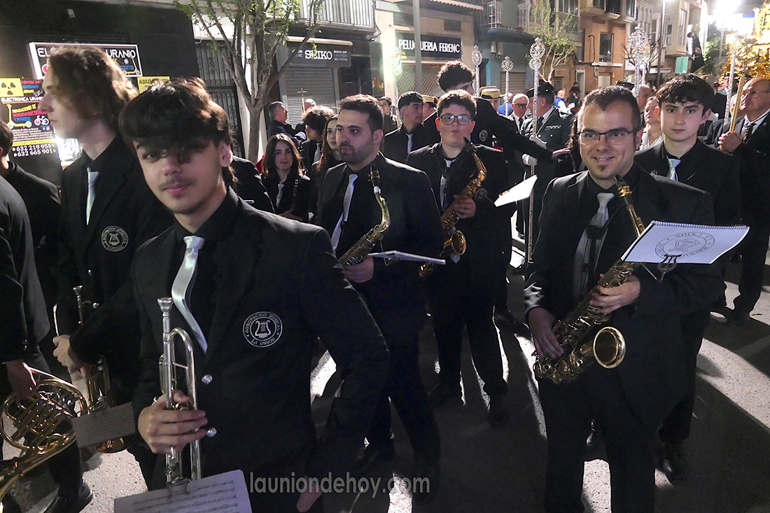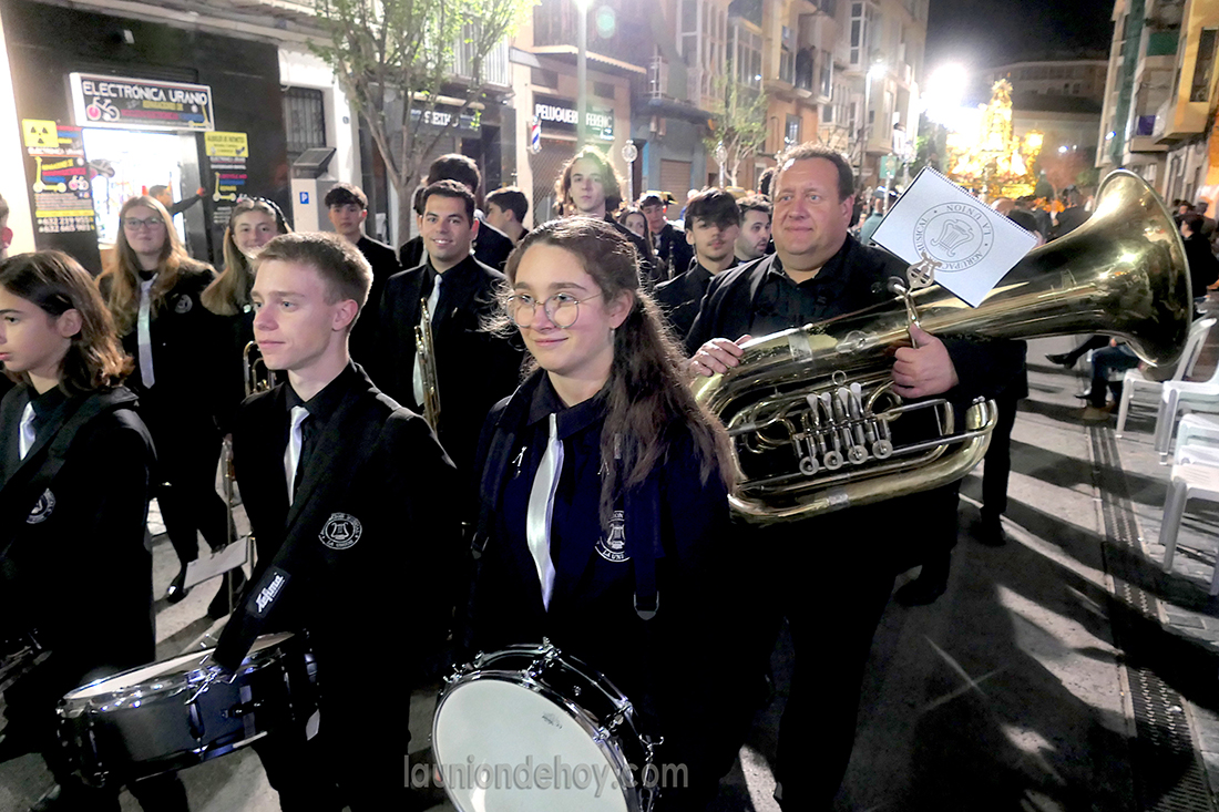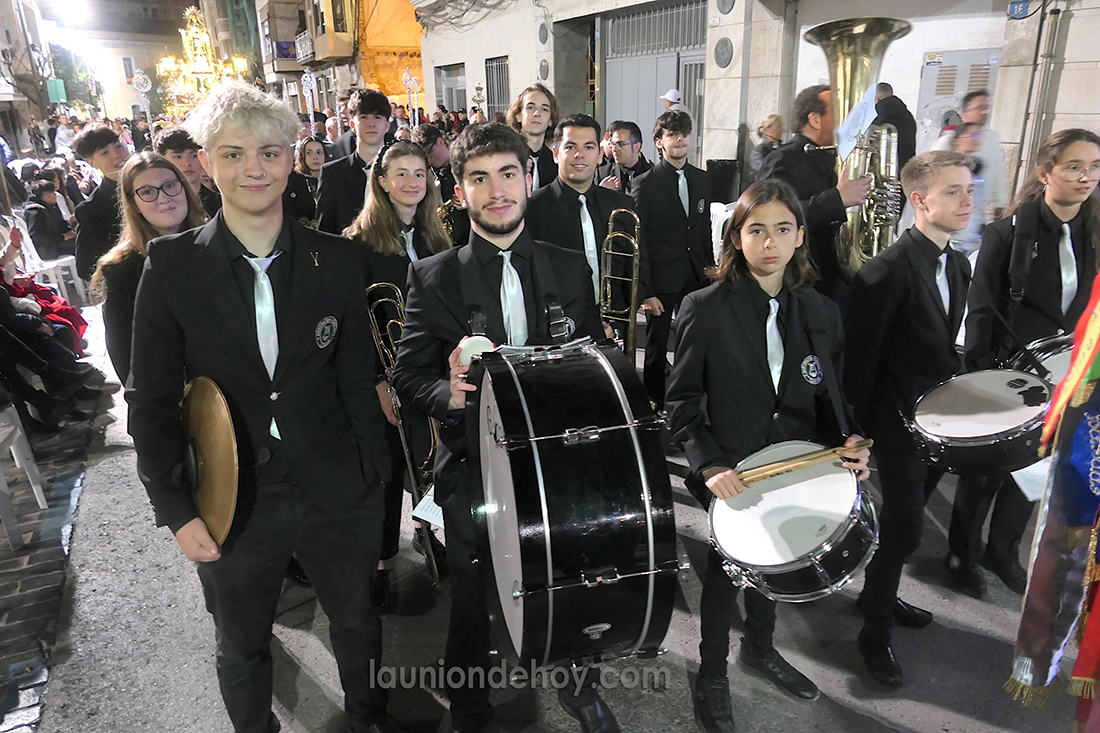 Daniel Cano, edil de Defiende La Unión, salió anoche con la banda del 'Maestro Esteban' acompañando a la Virgen del Rosario en la procesión del Cristo de la Misericordia de Cartagena.