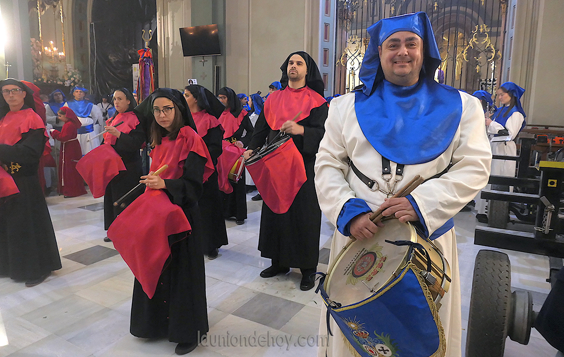 La Agrupación Musical La Unión se estructuró en dos grupos ubicados en distintos puntos del 'camino de la cruz' del conocido como 'Cristo del Lago' de Cartagena, ciudad a la que regresan hoy para acompañar el tercio infantil del 'Cristo de la sentencia' en la procesión del Domingo de Ramos, mientras que el Miércoles Santo saldrán con el grupo titular. El Jueves Santo estarán en la 'Procesión del Cristo de los Mineros' de La Unión y nada más acabar irán a Cartagena para acompañar al Nazareno en la madrugada del 'Encuentro'.