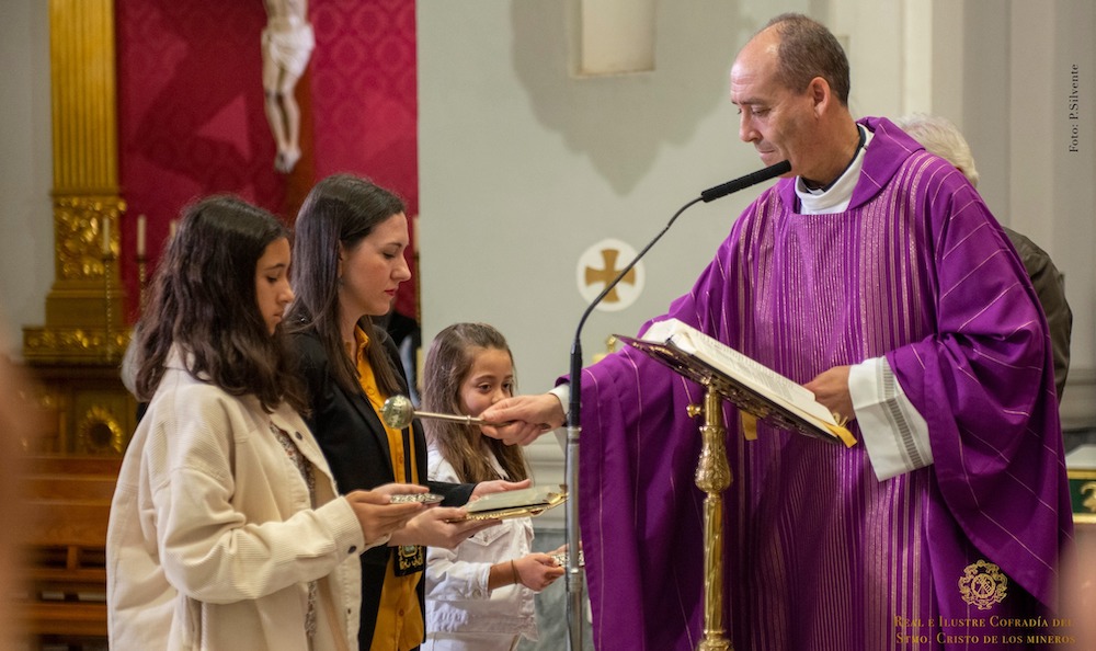 El pasado Viernes de Dolores se celebró en el templo de Nuestra Señora del Rosario la misa en honor a la Santísima Virgen de la Caridad, en cuyo desarrollo fueron bendecidas las nuevas estampas e insignias que la agrupación ha realizado para este año 2024. El oficio estuvo enriquecido por el rezo hecho oración de las saetas de Paco Severo acompañadas por el solemne toque de tambor de Jose Antonio Martínez, director de la banda del colectivo procesionista.