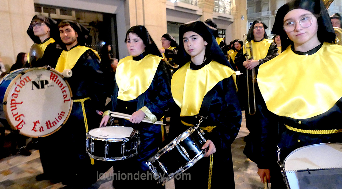 La Agrupación Musical La Unión acompañó al Cristo de la Sentencia. Esta noche estará en La Unión y en la madrugada se desplazará a Cartagena para acompañar al Nazareno en 'El Encuentro':