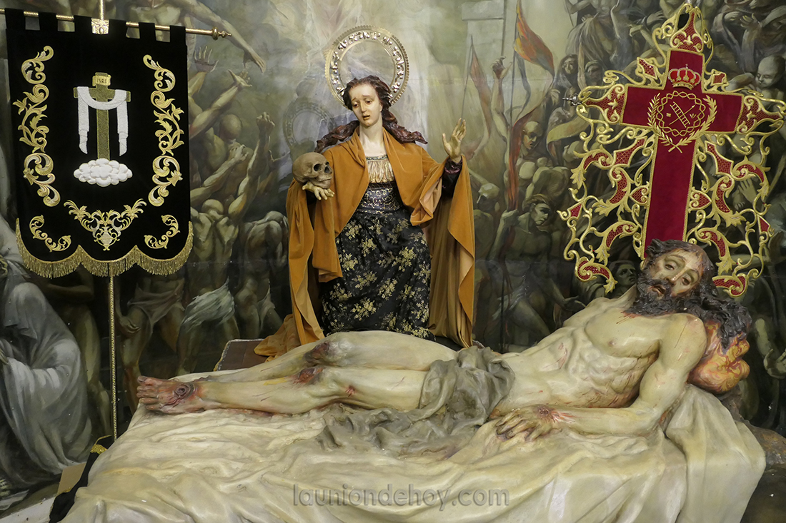Esta noche (20.30 horas) comienza la ‘Procesión del santo entierro’ de La Unión, que tiene como imagen central al Yacente que el artista unionense Paco Conesa creó (y donó) en 1994. La imagen presenta la iconografía que se estableció en España en el siglo XVII en la escuela castellana a partir del escultor Gregorio Fernández, diferente al modelo que se estilaba hasta entonces, en el que Jesús estaba sin la cabeza elevada y, habitualmente, rodeado de personas llorando o lamentando su pérdida.
