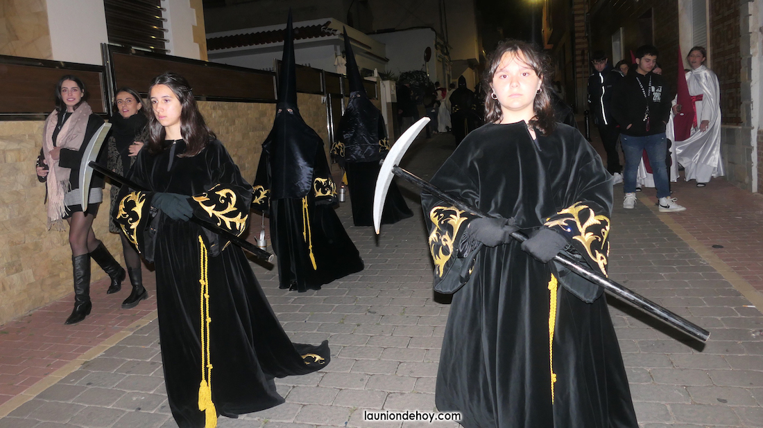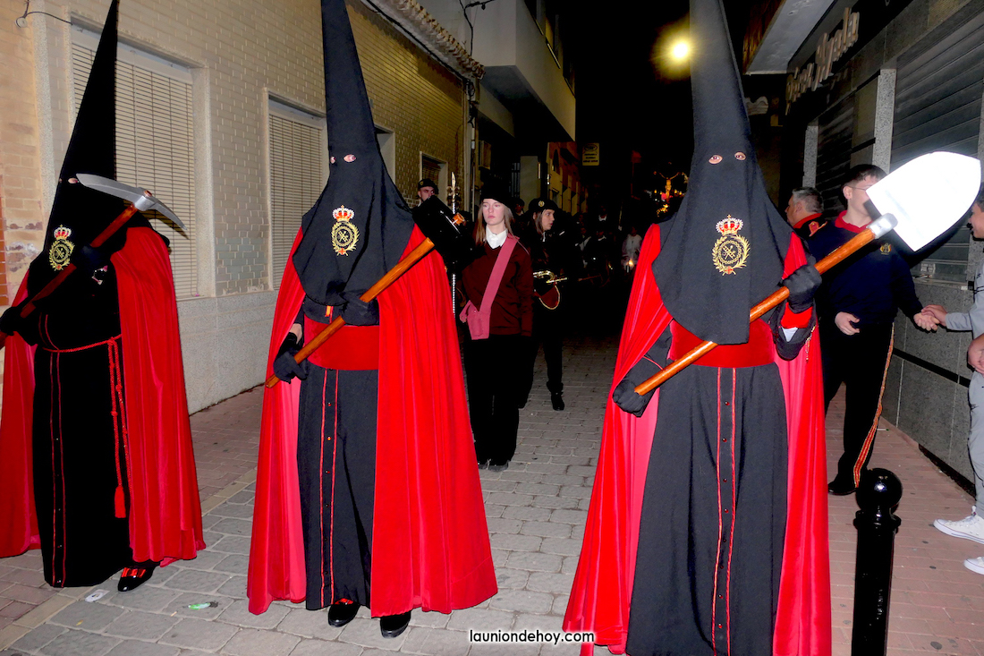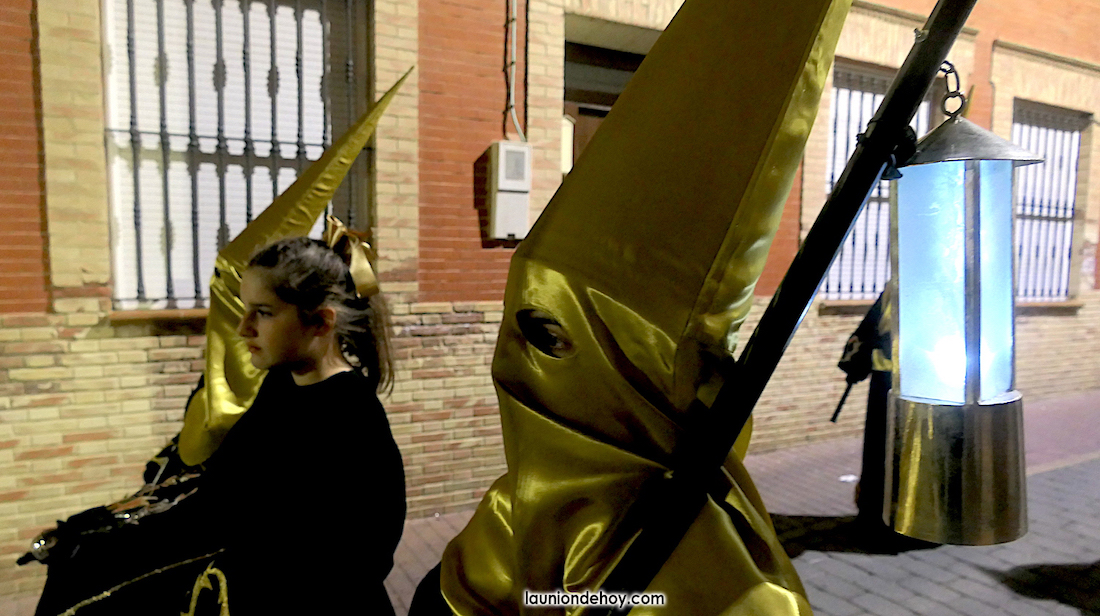 La mayor singularidad de la Semana Santa de La Unión está en los guiños que efectúa al pasado minero de esta tierra, siendo el desfile pasionario del Jueves Santo el que más objetos relacionados ofrece. En las fotos siguientes mostramos a las agrupaciones de la Virgen de la Caridad, Cristo de los Mineros y Jesús Nazareno. Se observan túnicas de cola con el bordado de un castillete y penitentes portando carburos, picos, palas, un marro, el yunque y, entre otros, carretillas de transporte de material minero y unos singulares hachotes de hombro con lámparas.