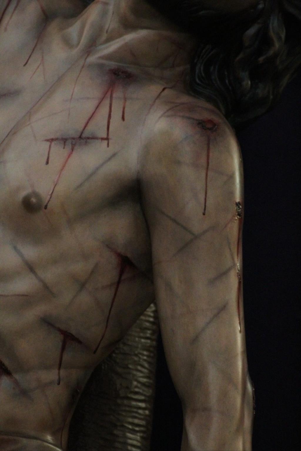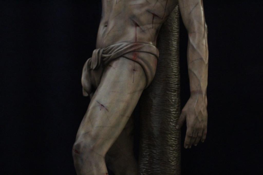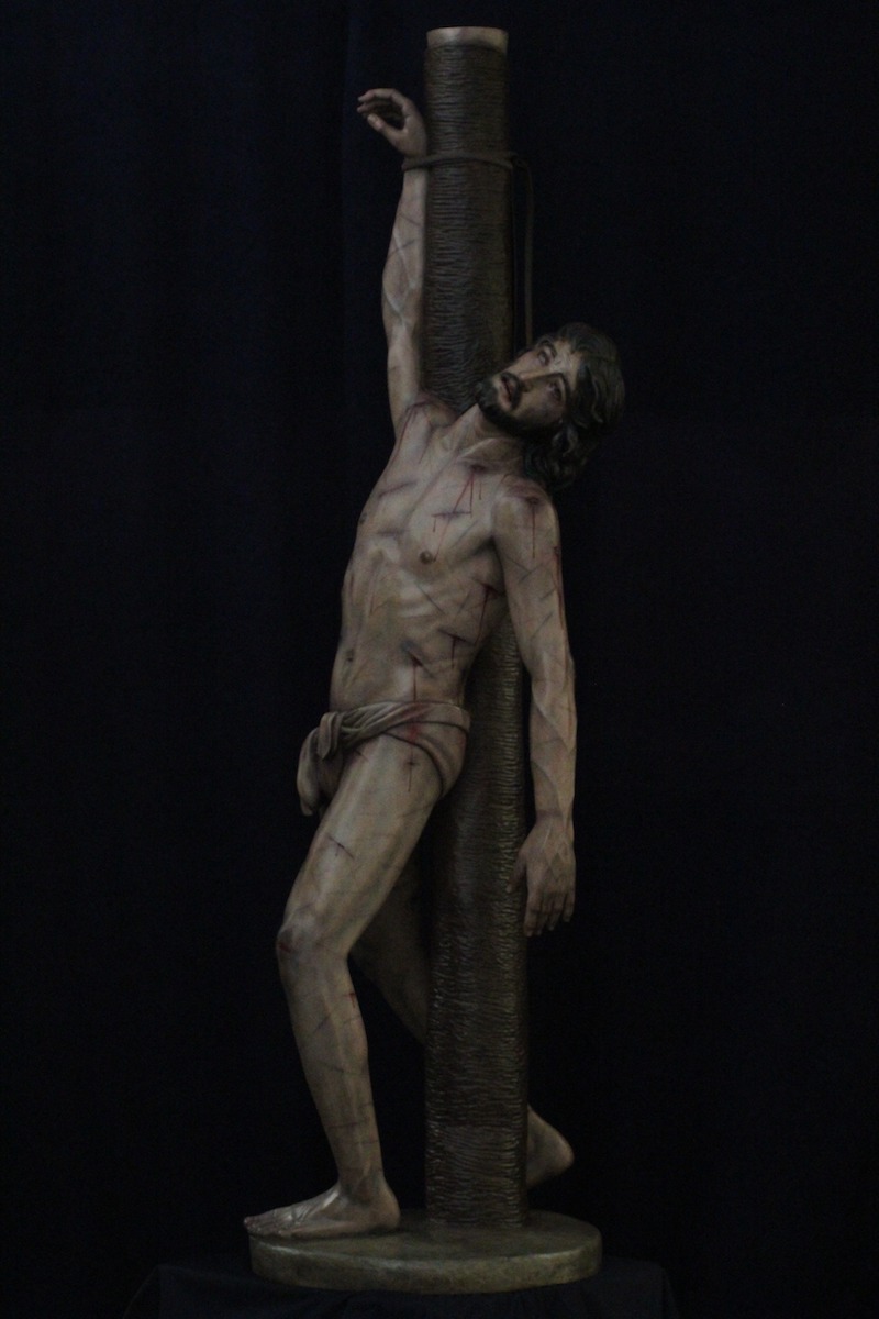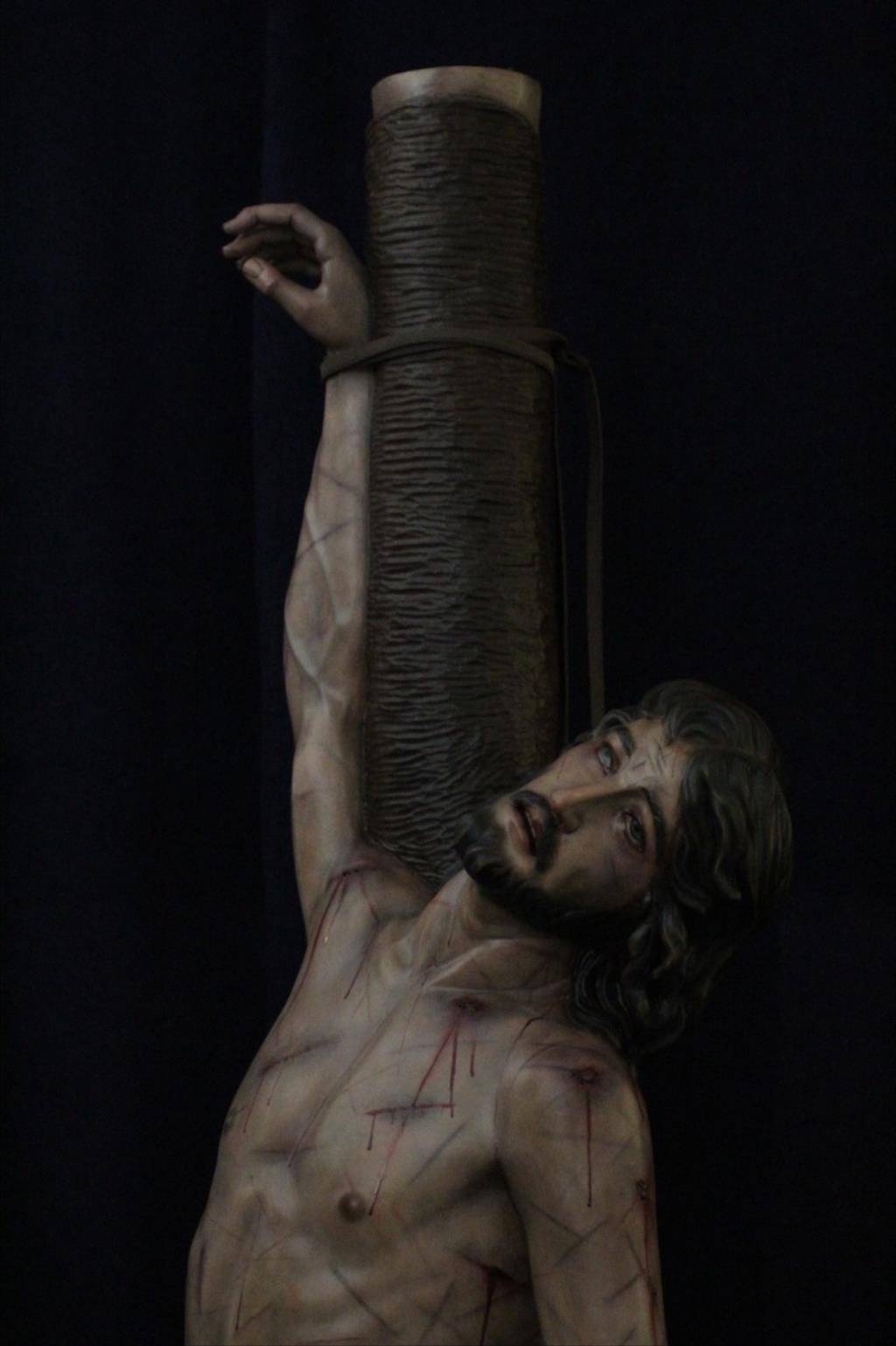 El imaginero unionense ha terminado la elaboración de talla completa de la figura de Jesucristo en su sufrimiento durante la tortura con flagelo que sufrió por parte de los soldados romanos tras ser condenado a la crucifixión por Pilatos. Se trata de una obra en madera policromada de 180 centímetros de altura y en el que Jesús se muestra agotado por el dolor, siendo la mano atada la que evita que caiga.