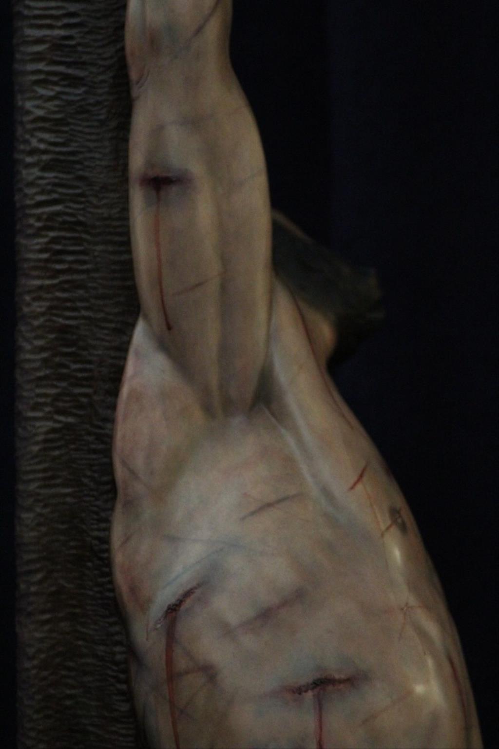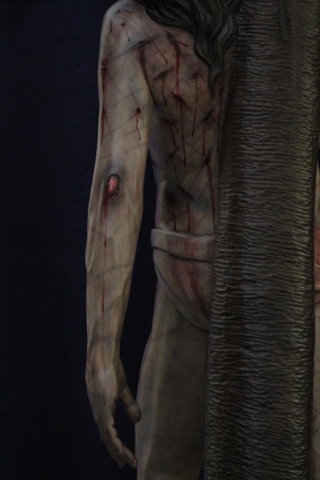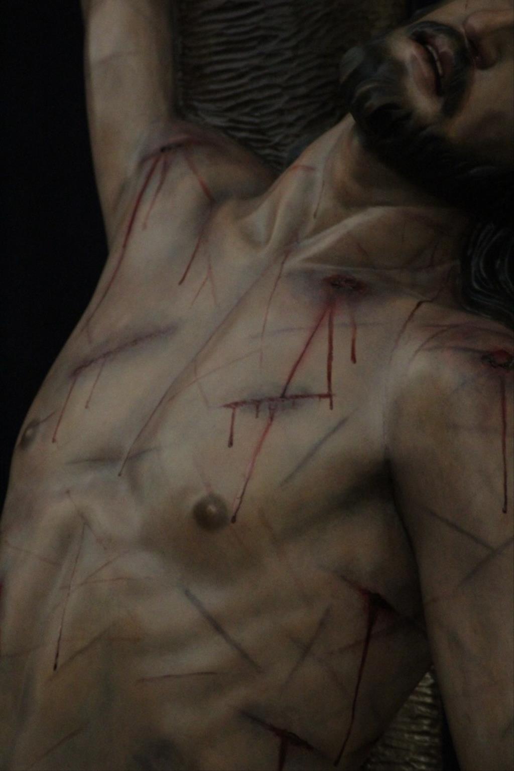El imaginero unionense ha terminado la elaboración de talla completa de la figura de Jesucristo en su sufrimiento durante la tortura con flagelo que sufrió por parte de los soldados romanos tras ser condenado a la crucifixión por Pilatos. Se trata de una obra en madera policromada de 180 centímetros de altura y en el que Jesús se muestra agotado por el dolor, siendo la mano atada la que evita que caiga.