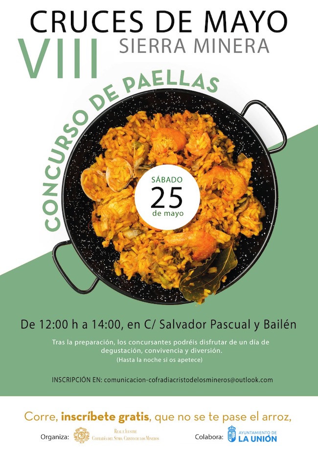 La Real e Ilustre Cofradía del Santísimo Cristo de los Mineros, con la colaboración del Excmo. Ayuntamiento de La Unión, convoca un concurso de paellas, para poner sabor a las Cruces de Mayo Sierra Minera.