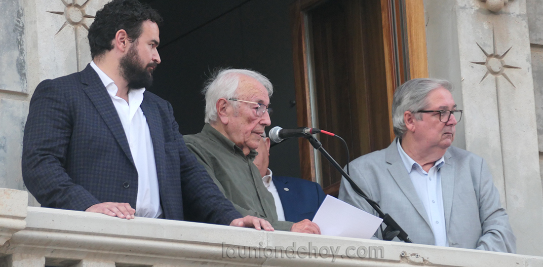 La octava edición de las 'Cruces de mayo de la Sierra Minera' se activó, por segundo año consecutivo, desde el balcón de la Casa del Piñón, muy cerca de donde nació y jugó el pregonero de este año, Ginés Conesa Jiménez 'Tito'. "En este edificio vivieron mis abuelos y yo nací a 50 metros de aquí, para luego trasladarnos a otros tantos, pero hacia el oeste, donde ahora levantarán un hotel, respetando la fachada", dijo como referencia al lugar de este mundo que lo recibió en 1939, creando un ADN que mantiene pese a que se trasladase a Cartagena al casarse con "una bella unionense", para después iniciar un periplo profesional que le ha llevado por Elche, Murcia y Alicante.