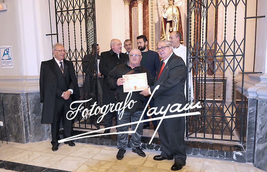 Después, junto a la capilla donde está la imagen de San Juan, creada por Rigal hace más de ocho décadas, tuvo lugar la entrega de certificados de admisión a 12 niños que entran en la familia sanjuanistas y de diplomas a los hermanos que han alcanzado un cuarto de siglo en la agrupación y que no pudieron recogerlos en la cena gala del colectivo cofrade.