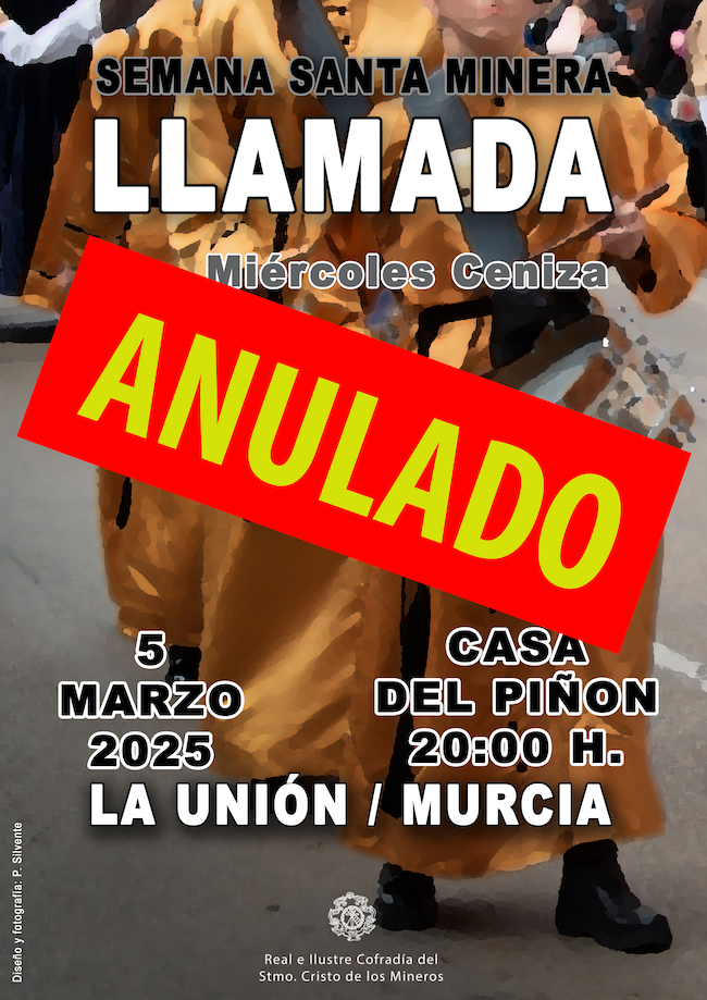 El acto previsto para la noche de este 'Miércoles de ceniza' que marca el inicio de la cuaresma y la cuenta atrás hacia la Semana Santa Minera queda suspendido debido a las alertas climáticas que anuncian fuertes lluvias durante la jornada. También se anula el pasacalles de tambores y la imposición de cenizas a los cofrades. En principio, ambos actos se trasladan a la mañana del próximo domingo, enlazando con la presentación del cartel de Semana Santa.