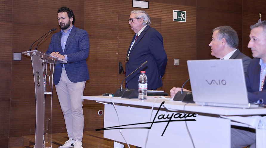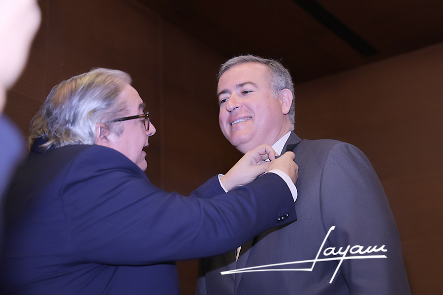 Tras la exposición del señor Bernabé, llegaba el turno del hermano mayor, José Cortado a tenido a bien pronunciar unas palabras de agradecimiento tanto al presentador, como al director de la revista y su equipo, y al que ha pedido se acercara para que el alcalde del municipio le colocara la insignia de Plata de Lignum Crucis por su constante trabajo como director de la misma.