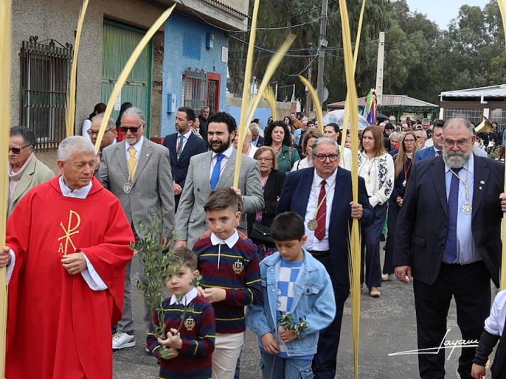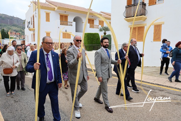 Andrés Vera, como párroco de la iglesia de Santiago Apóstol, bendijo las palmas y las ramas de olivo de la procesión de la ‘Entrada de Jesús en Jerusalén’, único relato de los evangelios que recoge la Semana Santa. La lluvia impidió que el recorrido se puede llevar a cabo completo. Destacar la presencia de la corporación municipal, de las cofradías portmaneras y de la Cofradía del Cristo de los Mineros. La marcha de la procesión contó con el acompañamiento musical de Agrupación Musical La Unión.
