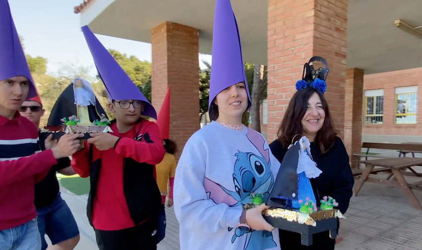 El colegio público de educación especial de La Unión llevó a cabo una procesión con los típicos elementos cofrades, que tuvo como epicentro un trono de mayor tamaño y otros más pequeños creados con esmero y devoción por alumnos y maestros, terminando el desfile pasionario con saetas y lluvia de pétalos.