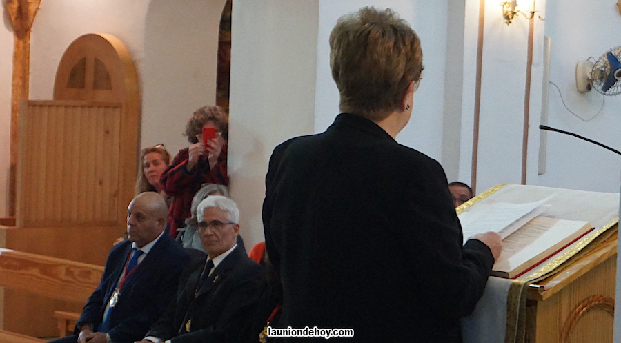 La iglesia de Santiago Apóstol ha sido nuevamente el marco donde se ha desarrollado el pregón de la Semana Santa de Portmán, el cual ha contado con la presencia de unas cincuenta personas, entre las que se encontraban el alcalde y concejales del PP y de VOX de su equipo de gobierno y ediles del PSOE, además de jefe de policía honorario de la Policía Local, Fulgencio García Cegarra, y representantes de la Cofradía de la Virgen de la Caridad de Alumbres.