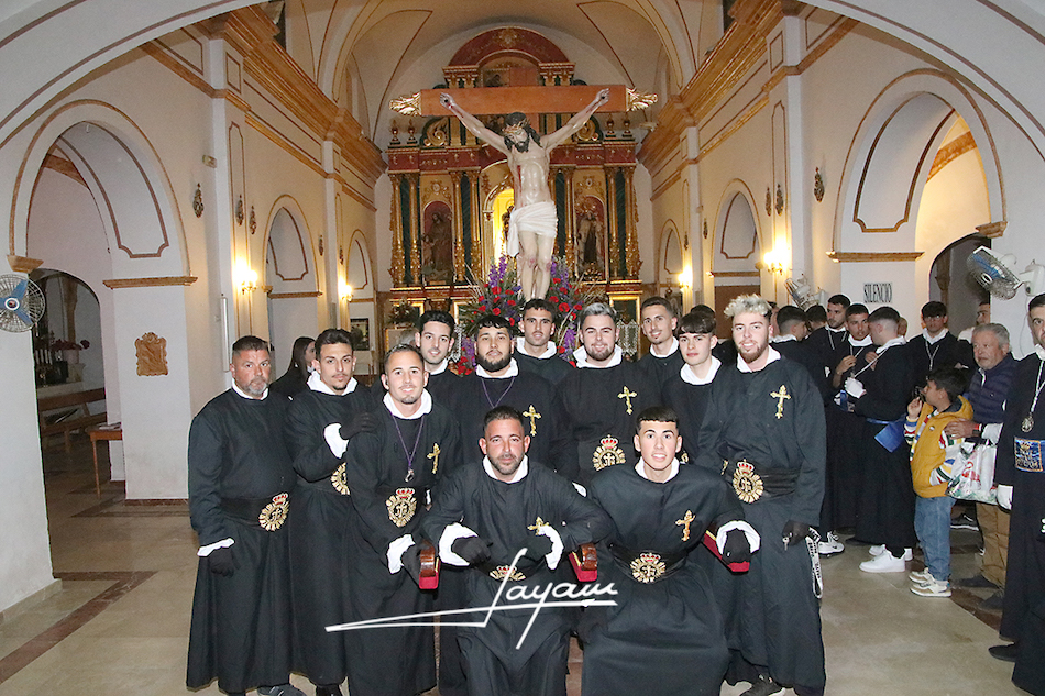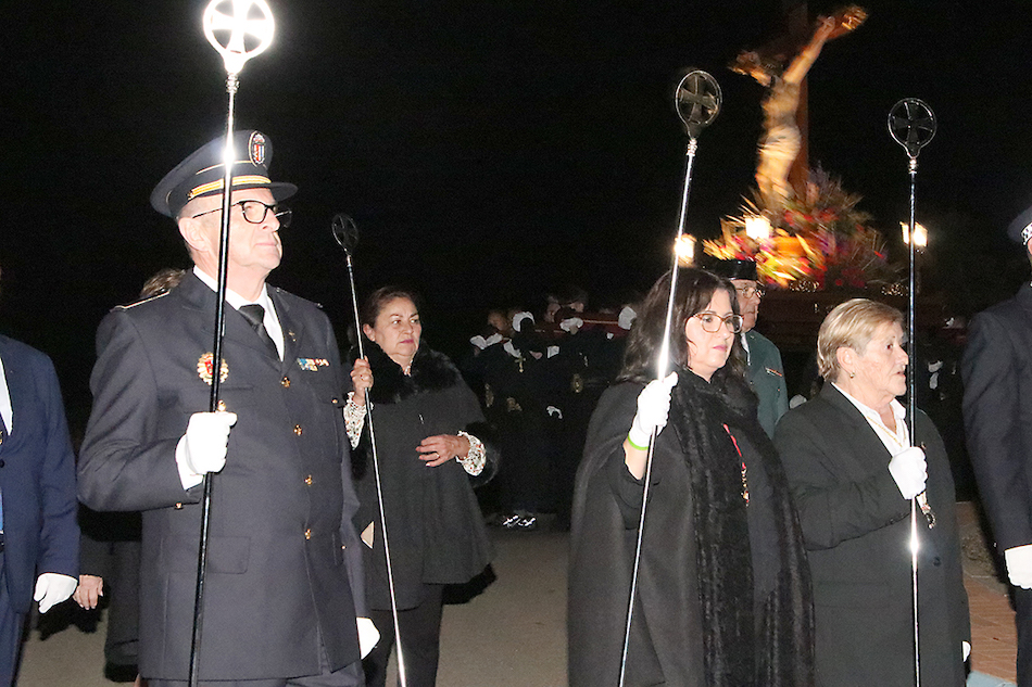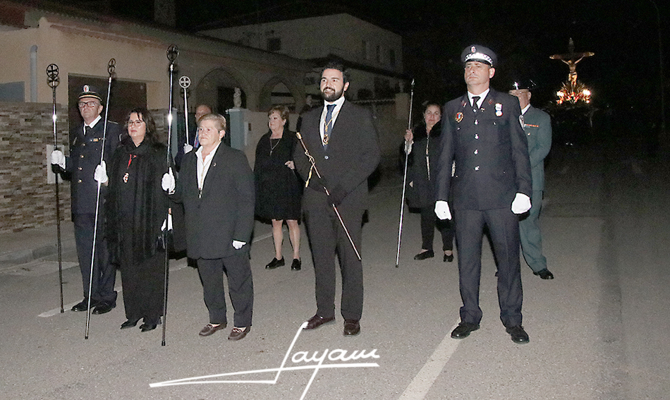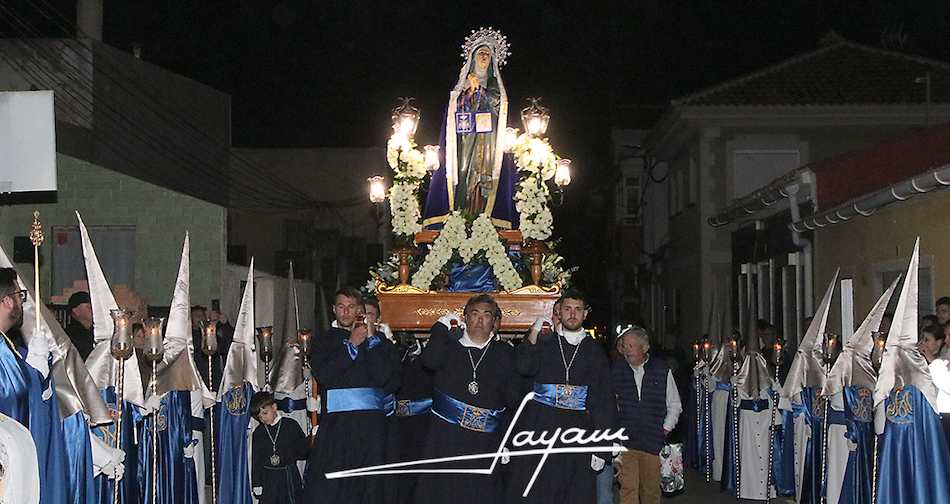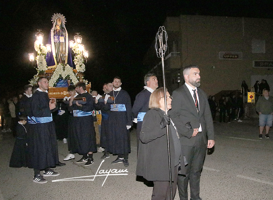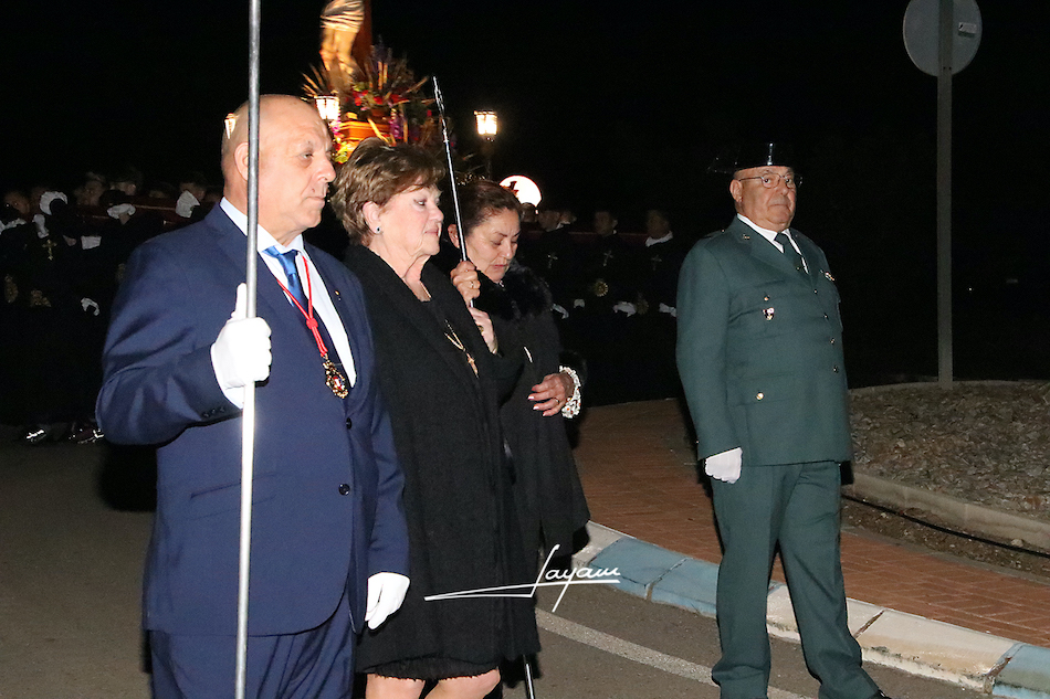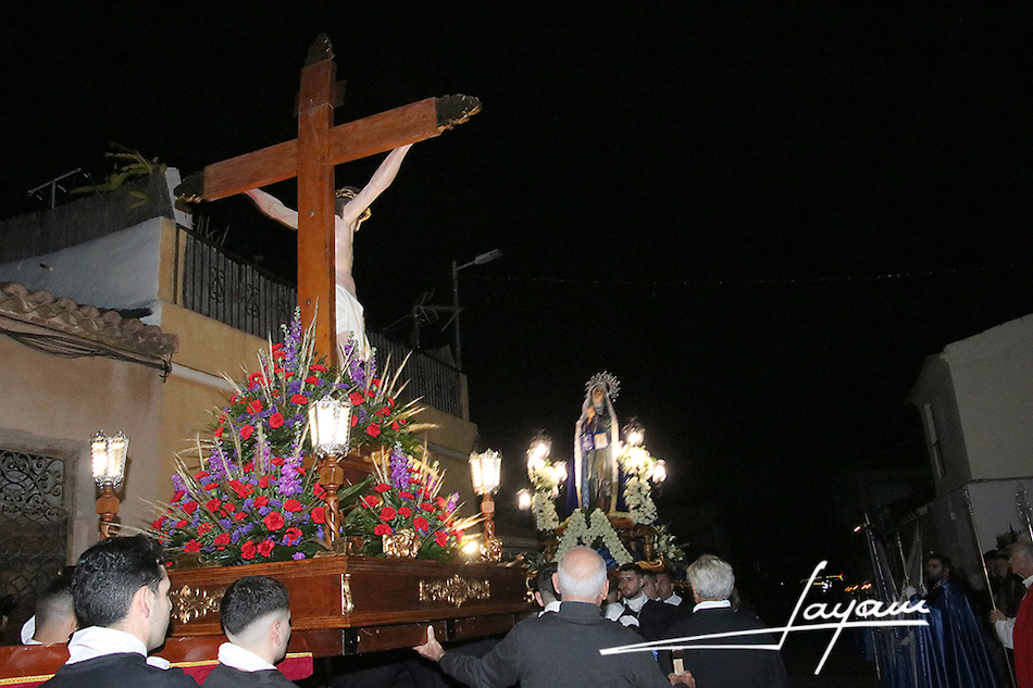 Medianoche. Comienza la procesión unionense de mayor recogimiento, cuyos protagonistas avanzan entre la oscuridad arropando al Cristo del Silencio y la Virgen de la Dolorosa, a quienes se observa en la fotografía que figura sobre estas líneas cruzándose durante el recorrido por el pueblo.
