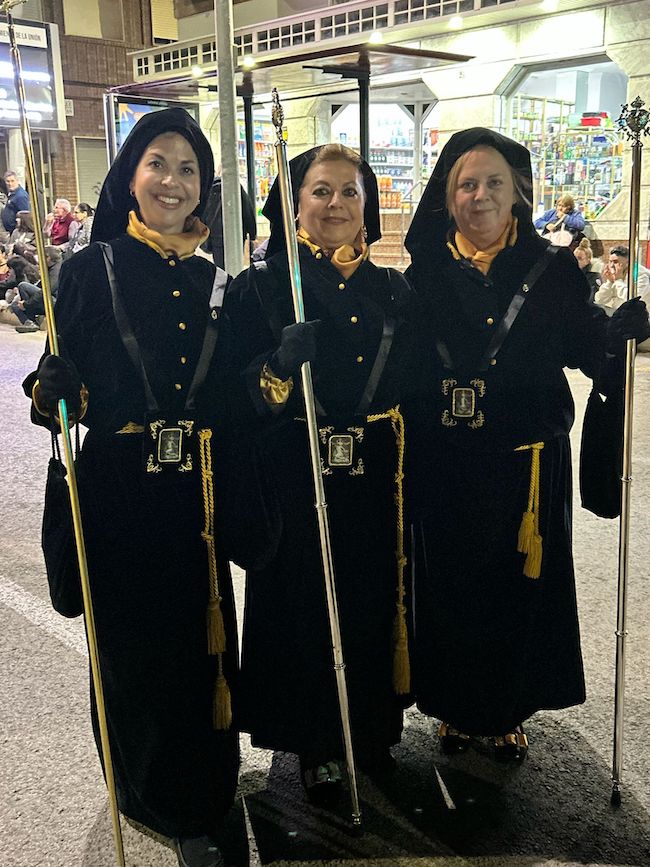 María del Carmen Hernández entre Lorena y Toñi en la procesión