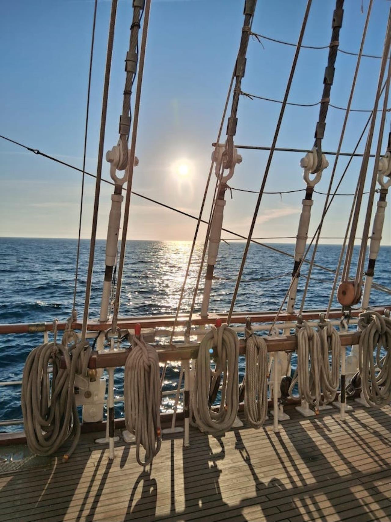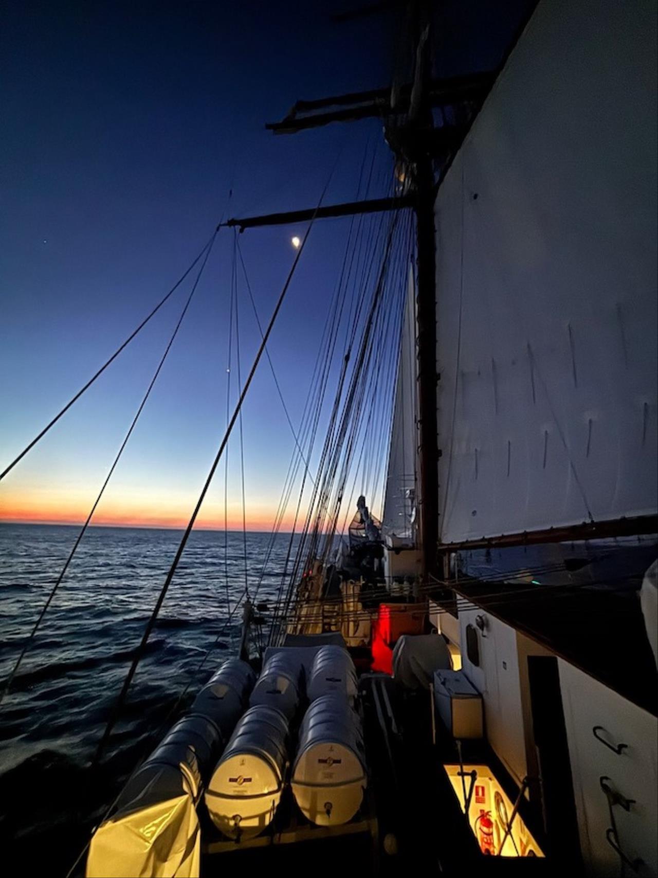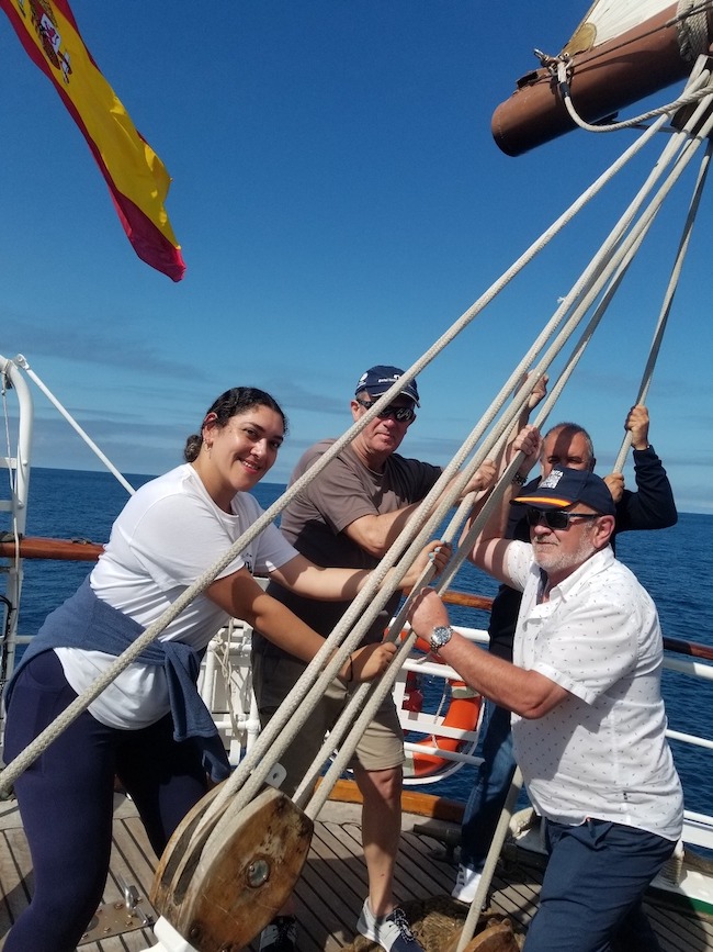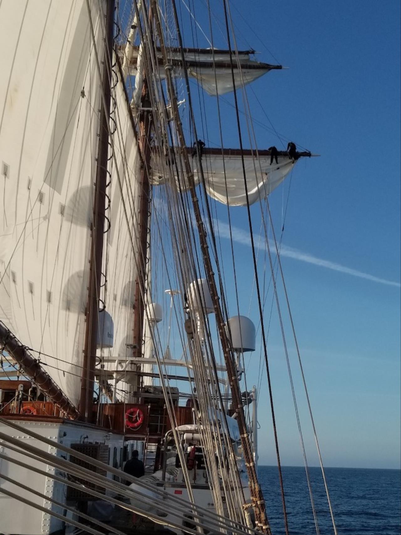 Durante el recorrido, que duro 4 dias, vivimos la experiencia de navegar a vela, participando de todas las duras y difíciles maniobras que conlleva dicha navegación, teniendo en cuenta que el barco está armado con 4 mástiles de 50 m de altura, así como tambien, tuvimos la oportunidad de ser instruidos mediante abundantes conferencias, tanto de navegación a vela, como de meteorología, derrota y vida a bordo.