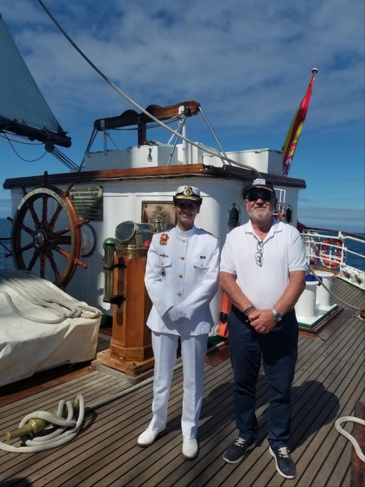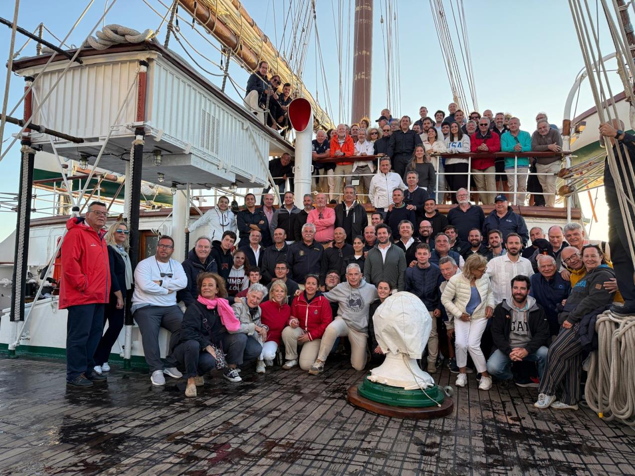 Juan Antonio Pérez Campillo, empresario unionense y exhermano mayor de la Cofradía del Cristo de los Mineros, se encuentra a bordo del buque-escuela, desde donde envía una crónica sobre esta experiencia excepcional, en la que también da a conocer la entrega al comandante de la nave de un libro encuadernado que recoge el hermanamiento que existe entre la hermandad organizadora de la Semana Santa Minera con la Armada Española.