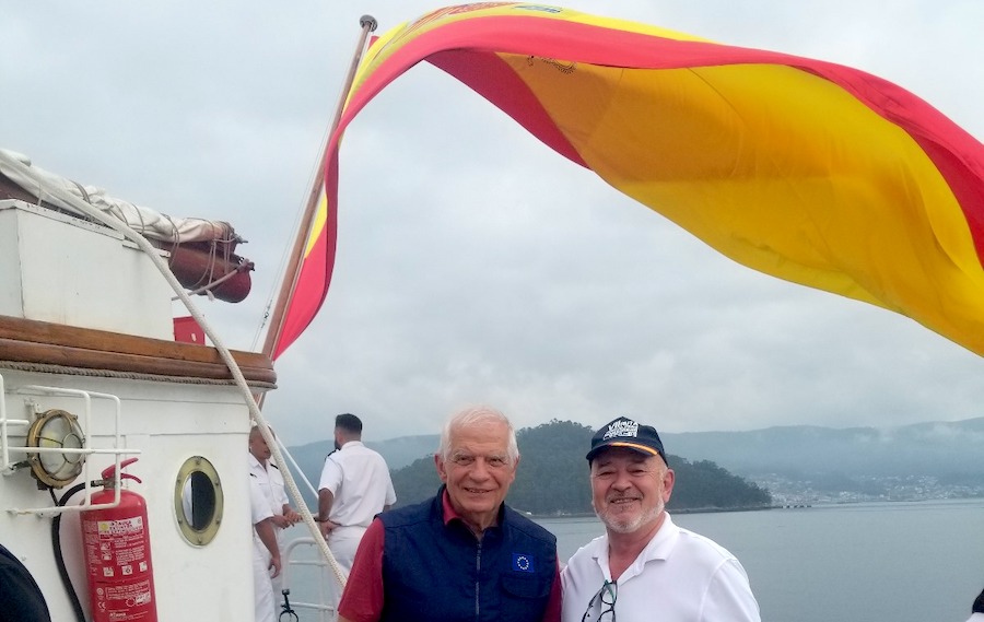 El buque llegó a la Escuela Naval Militar de Marín, en Pontevedra, procedente de Las Américas, donde desembarcaron los Alumnos Guardiamarinas -entre ellos S. A. R. la Princesa Leonor- y embarcarnos un grupo de invitados de lo más variado de la sociedad española, ocupando las plazas que estos dejaban libres.