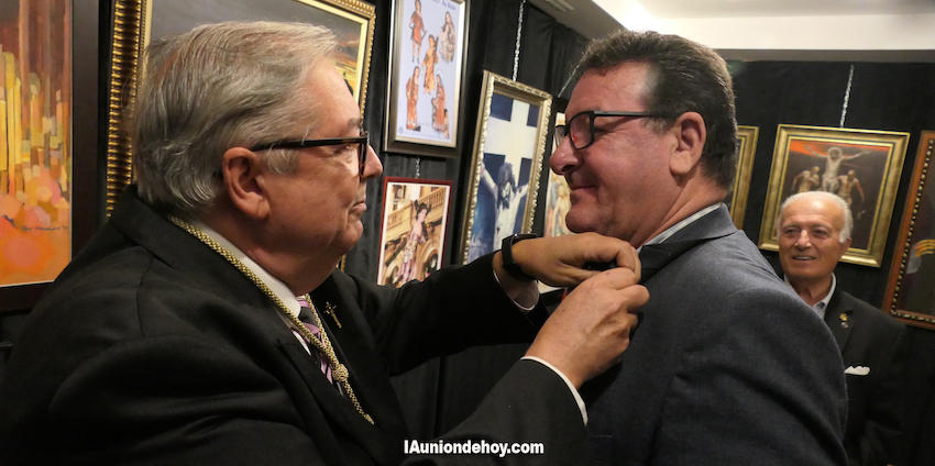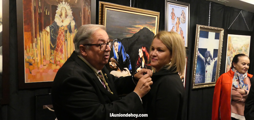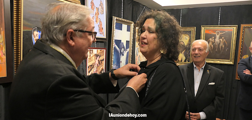 Aprovechando el acto de agradecimiento al voluntariado por el éxito de las 'XXII Jornadas diocesanas de hermandades y cofradías de la Región de Murcia', el hermano mayor, José Cortado, impuso las insignias a los presidentes de las agrupaciones de la Virgen de la Caridad (Antonio Pagán) y de San Juan Evangelista (Pedro Belmonte) y a las presidentas de María Magdalena (Paqui Sáez) y de la Dolorosa (Celia Hermógenes), anunciando que en breve las recibirán sus homónimos del Nazareno, Soledad y Cristo de los Mineros y los demás integrantes de la directiva de la hermandad, quienes no pudieron acudir al encuentro celebrado en el Museo de la Semana Santa.