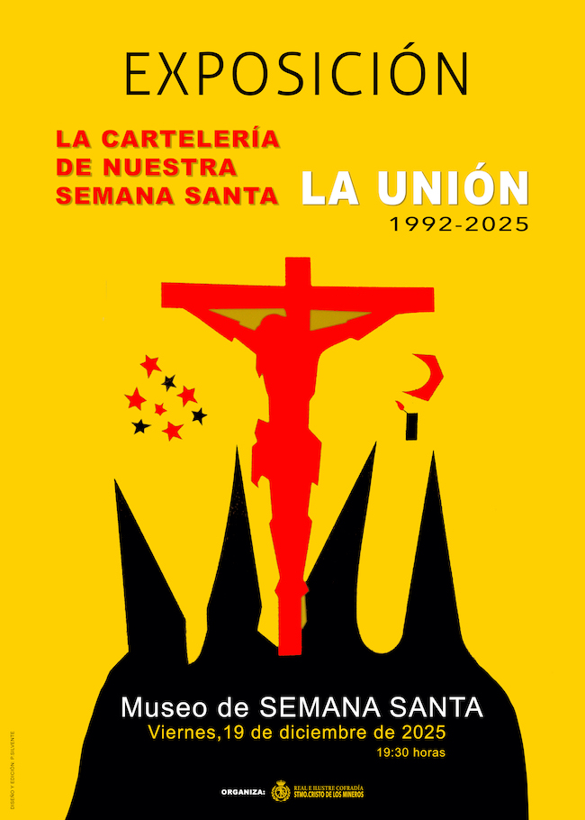 La Real e Ilustre Cofradía del Santísimo Cristo de los Mineros de La Unión será la anfitriona el próximo viernes, 19 de diciembre, en un evento sin precedentes en la localidad: la inauguración de una muestra que reunirá, por primera vez, todos los carteles anunciadores de la Semana Santa Minera desde el resurgir de las procesiones hace 33 años y que a la vez es un reconocimiento y gratitud a sus autores.