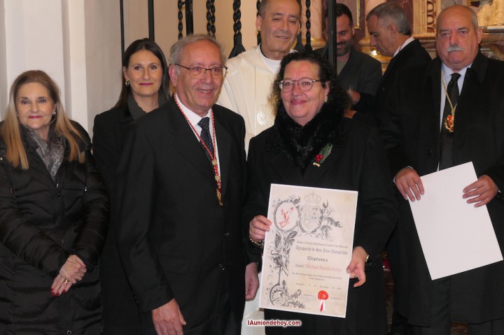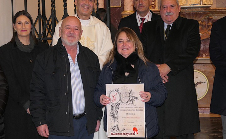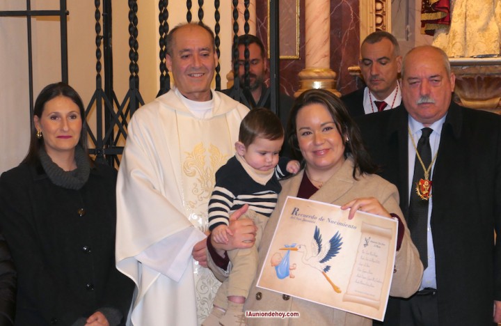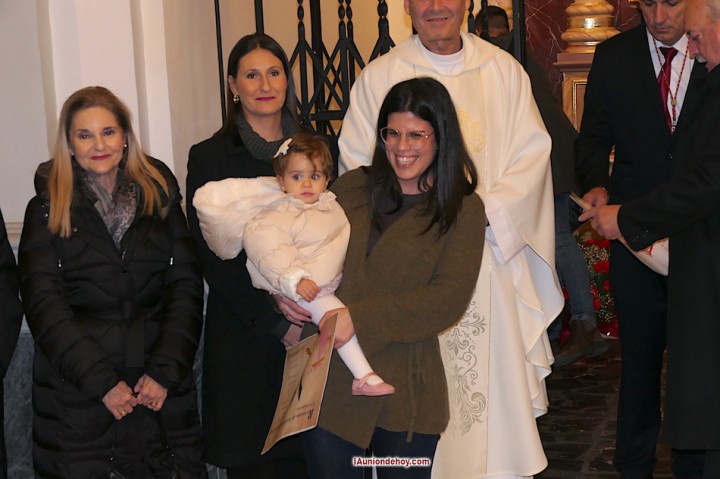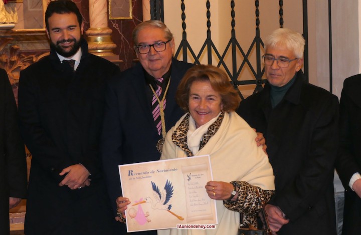 Cinco bebés, todos hijos de sanjuanistas, recibieron los diplomas acreditativos de su ingreso en una agrupación que aglutina a más de cien procesionistas. Ellos fueron Paula Gordillo Ros, Sara Jiménez Campos, Martina Guerrero Campos, Sergio Marco Rosique y Andrés Lorente Campos.