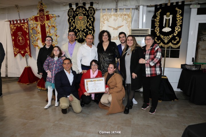 La cena-gala contó con la presencia de colectivos no procesionistas, como AECC, Amas de Casa o Caballeros de Santa Bárbara, entre otras. “Las asociaciones no somos rivales, sino complementarias y engrandece hacer cosas juntos”, dijo el hermano mayor, además de ofrecer a la cofradía y su gente en este sentido y “en la medida que podamos”. El presidente de la orden de la patrona de la minería, Carlos Bernabé, tomó a continuación la palabra para entregar dos placas de agradecimiento por el enriquecimiento de la procesión del 4 de diciembre con la incorporación de cornetas y tambores de la Semana Santa. Fueron recogidas por los representantes de las bandas de la Dolorosa y del Nazareno.