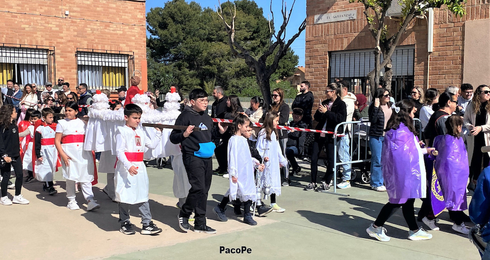 Fue en 1920 cuando por vez primera el patio del CEIP El Garbanzal acogió una procesión formada por alumnos. Entonces fue con las representaciones de las tallas del Cristo de los Mineros y de la Dolorosa. Dejó muy buenas sensaciones y, aunque el año siguiente no se celebró por la pandemia, en el curso 21-22 regresaba con un cortejo mayor que ya acogía a las imágenes de Jesús Nazareno y de San Juan Evangelista, habiéndose estabilizado en la víspera de la Semana Santa, siendo seis las procesiones ya celebradas.