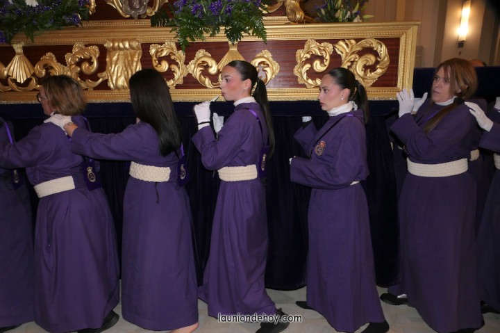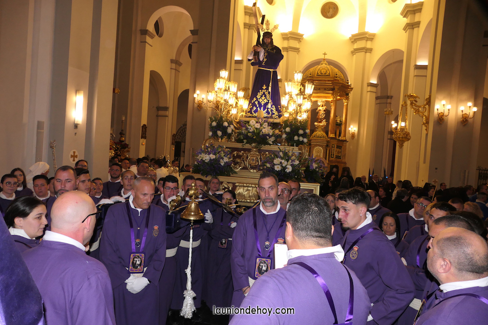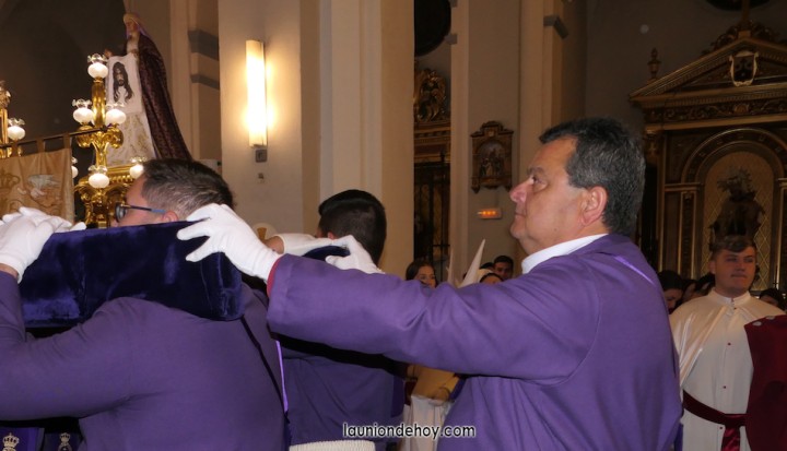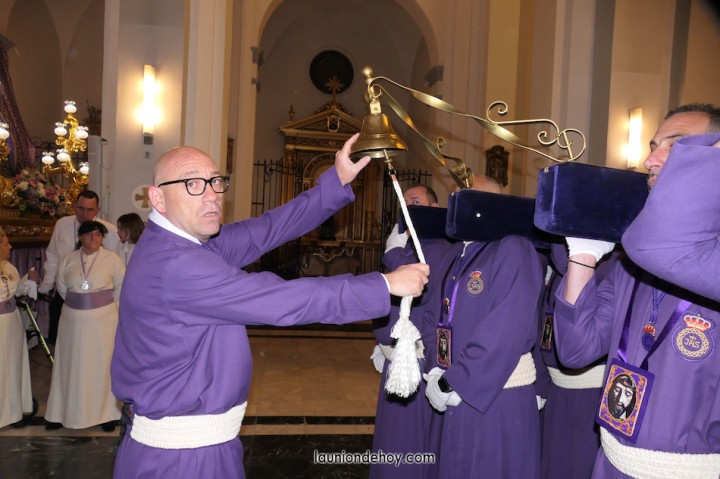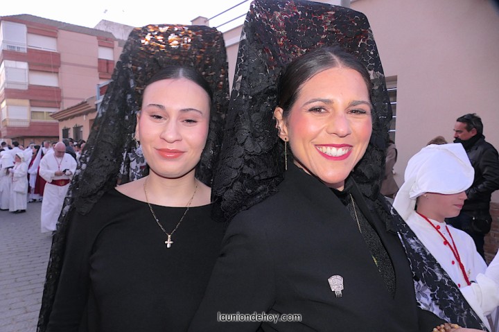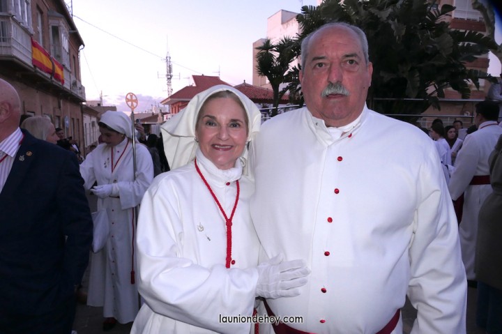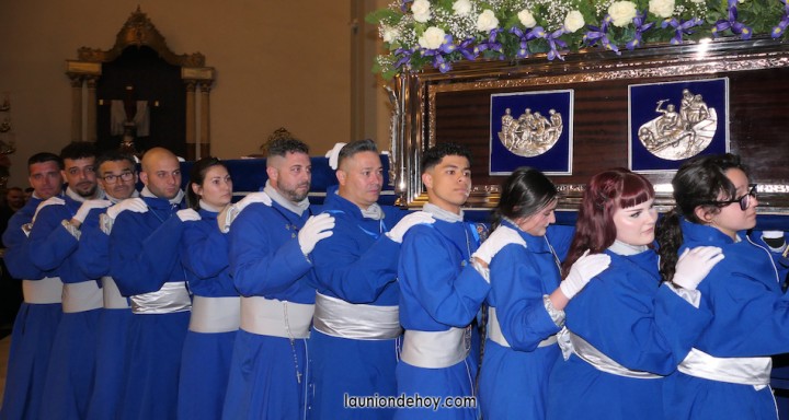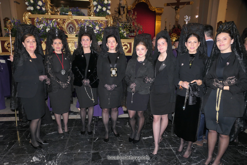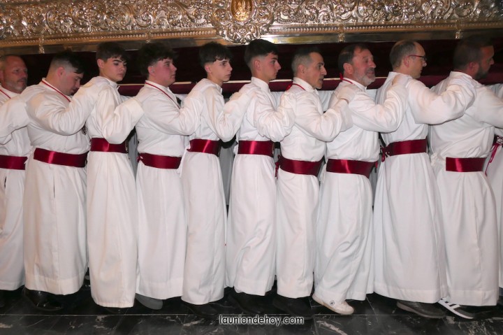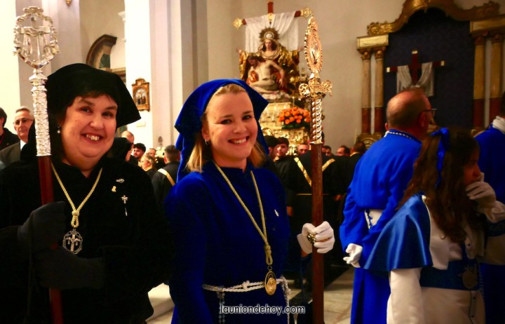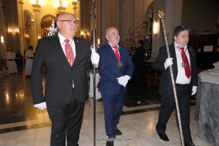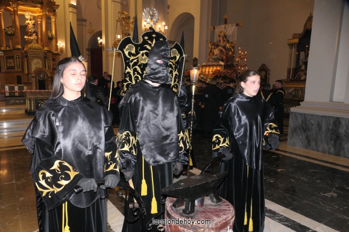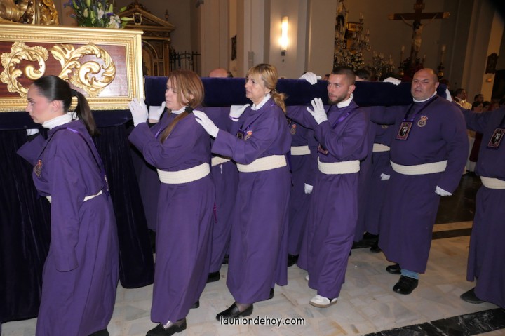 Junto al altar está la representación del PSOE, en el que la edil Leticia Egea forma parte de la Verónica. También el PP tiene edil cofrade con Loly Mendoza, hermana de la Dolorosa, mientras que Isabel Egea (VOX) forma es 'manola'. Por su parte, Daniel Cano, en DLU, mete el hombro en una vara del Nazareno y que esta noche es el encargado de la lectura previa que se le dirige a los costaleros antes de la salida: "Te pedimos que hoy nuestros pies sean uno solo, que el cansancio no nuble nuestra fe y uqe le orgullo de pertenecer a esta Unión nos dé la fuerza que el cuerpo nos niegue, que cada rincón de nuestro barrio...". También destacamos la presencia en el cortejo de otros colectivos religiosos amigos, como son los de la Cofradía del Cristo de la Misericordia de Cartagena y de la Hermanad de Romeros de San Ginés.