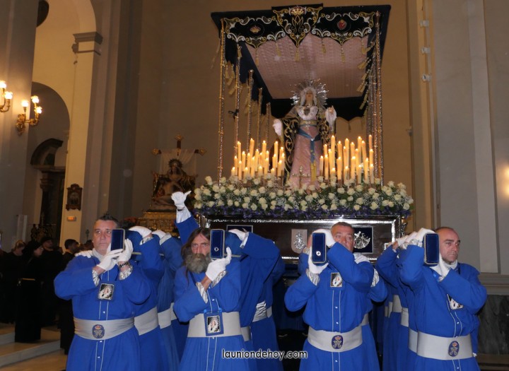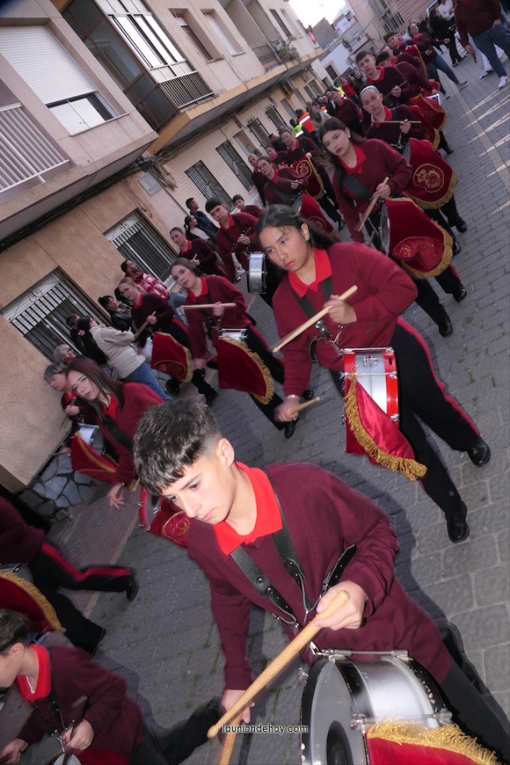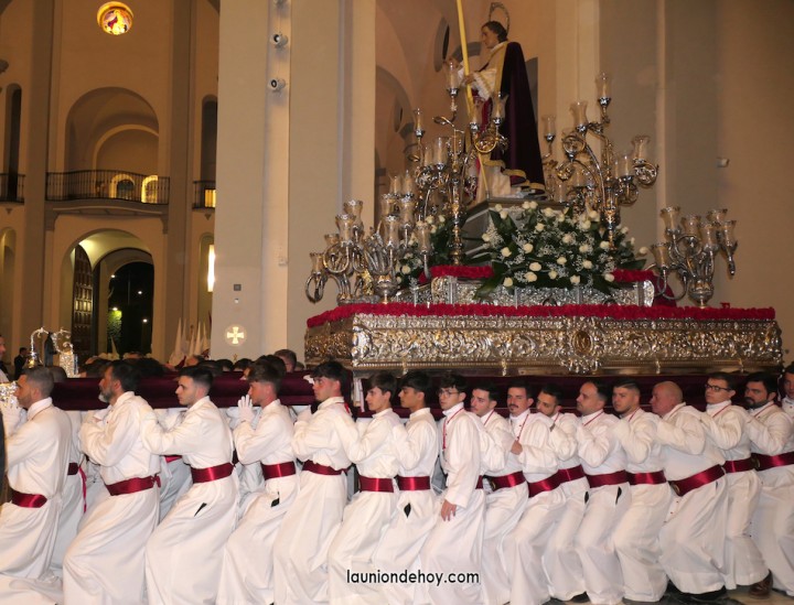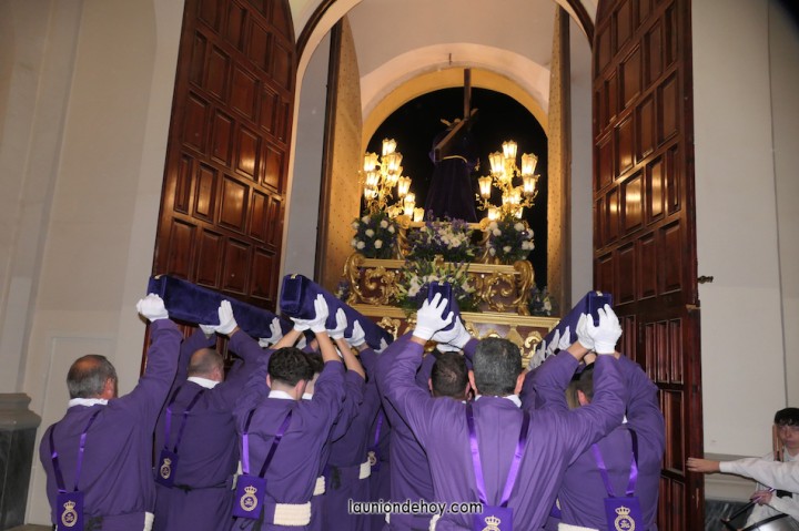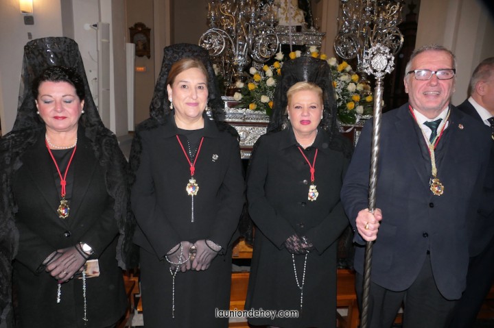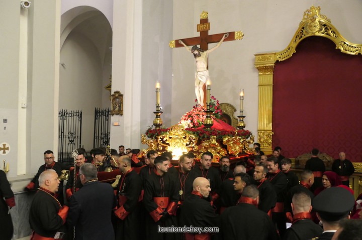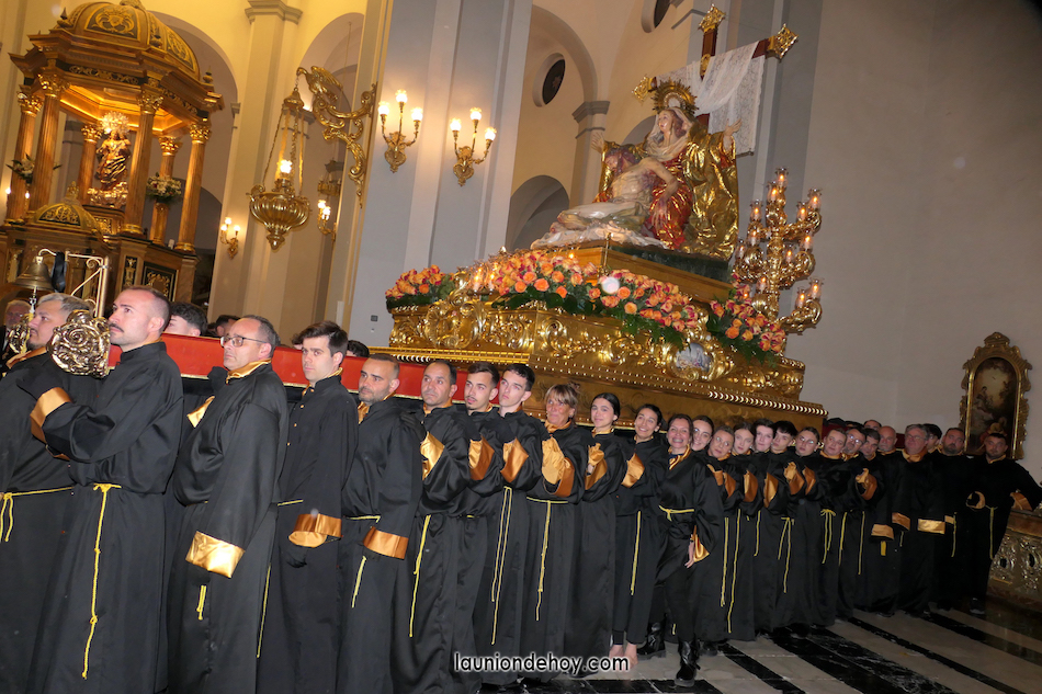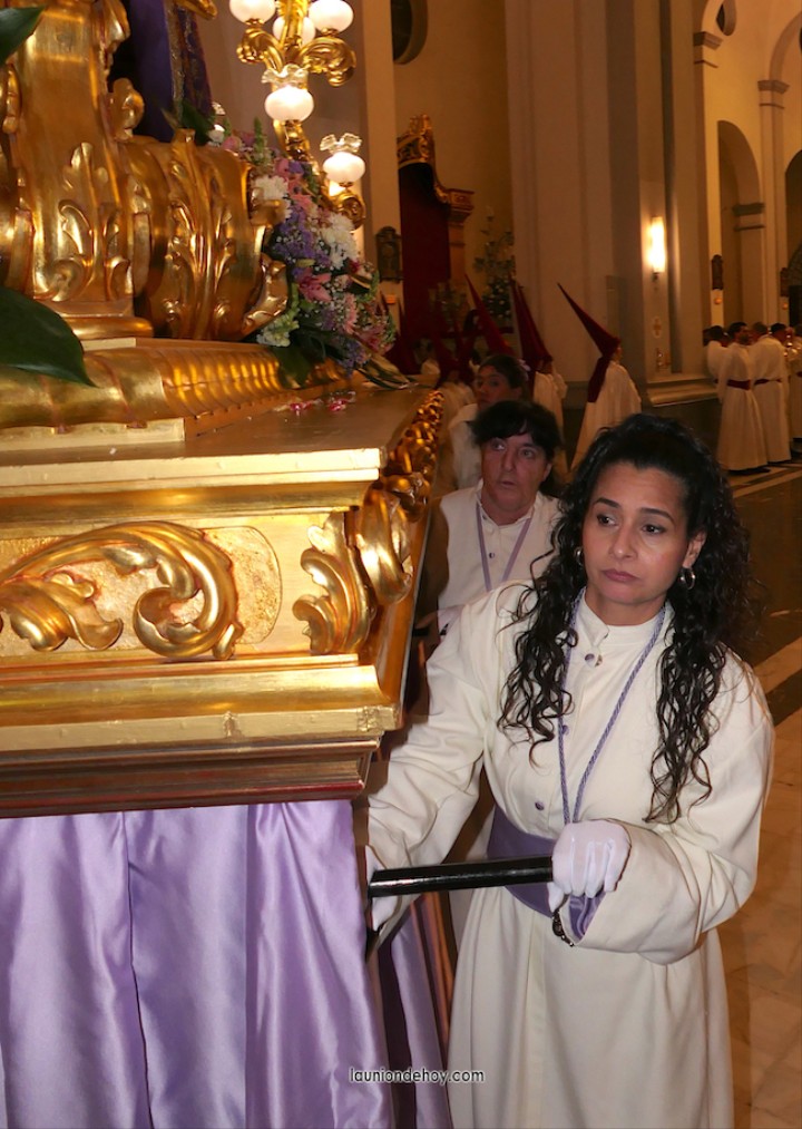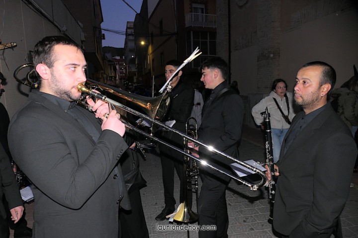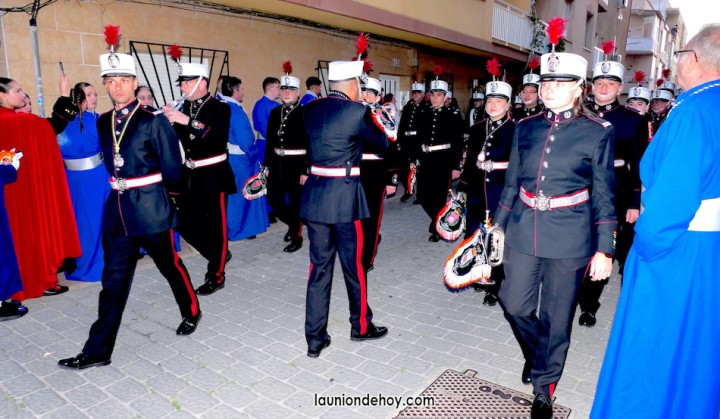 Junto al altar está la representación del PSOE, en el que la edil Leticia Egea forma parte de la Verónica. También el PP tiene edil cofrade con Loly Mendoza, hermana de la Dolorosa, mientras que Isabel Egea (VOX) forma es 'manola'. Por su parte, Daniel Cano, en DLU, mete el hombro en una vara del Nazareno y que esta noche es el encargado de la lectura previa que se le dirige a los costaleros antes de la salida: "Te pedimos que hoy nuestros pies sean uno solo, que el cansancio no nuble nuestra fe y uqe le orgullo de pertenecer a esta Unión nos dé la fuerza que el cuerpo nos niegue, que cada rincón de nuestro barrio...". También destacamos la presencia en el cortejo de otros colectivos religiosos amigos, como son los de la Cofradía del Cristo de la Misericordia de Cartagena y de la Hermanad de Romeros de San Ginés.