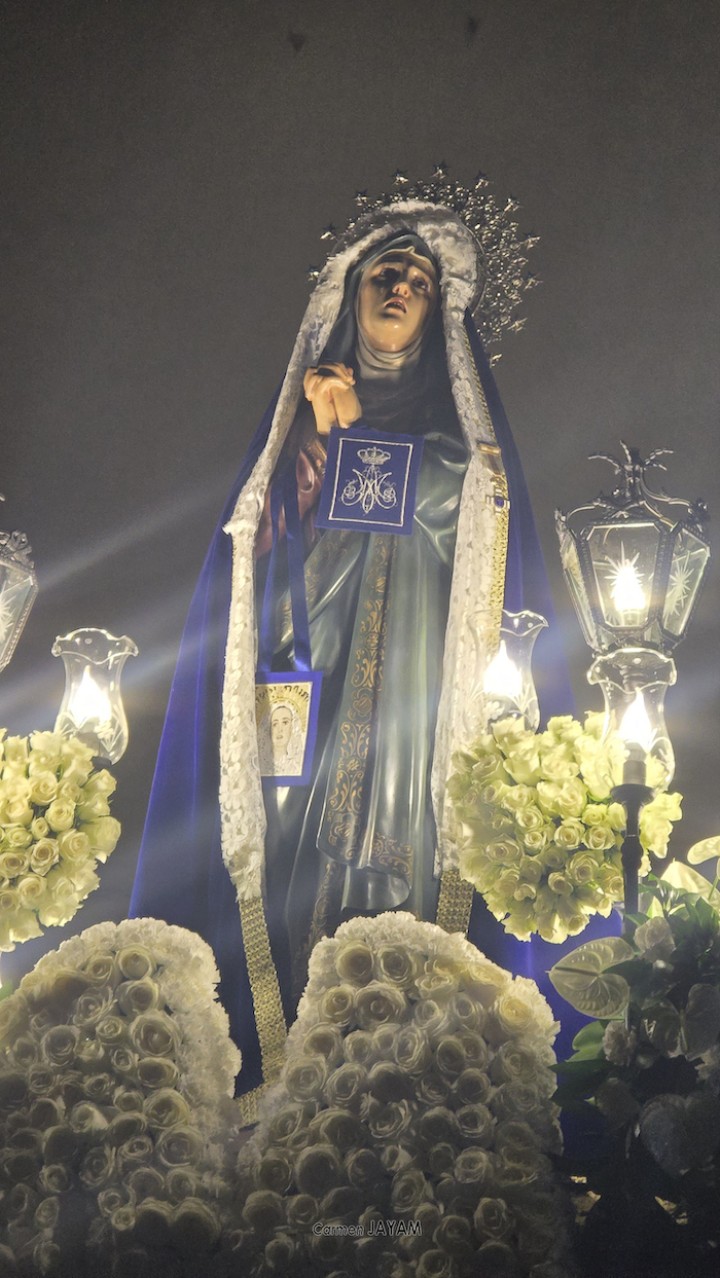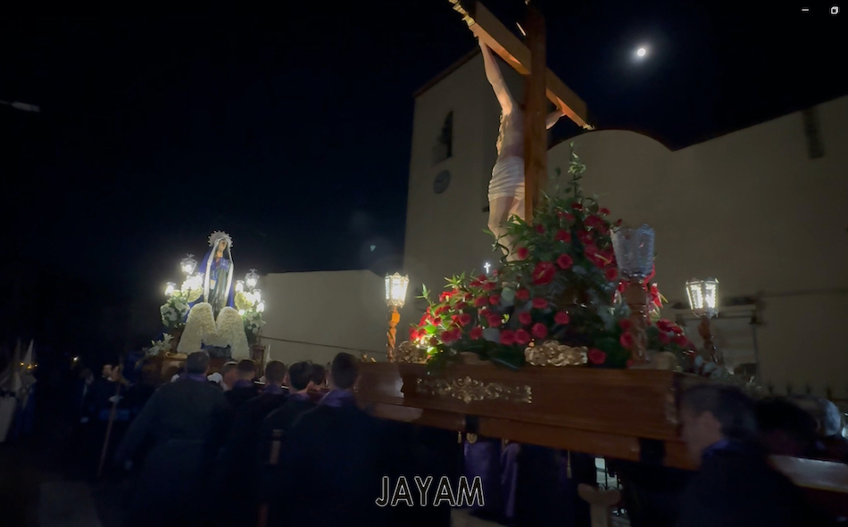 La pasión portmanera recorre las calles. Oscuridad y silencio que sólo rompe el sonido del golpe de tambor y la luna llena. Es otra noche mágica. Cuando se cruzar la medianoche, los tercios se ponen en marcha desde la calle Silvela, pasan por delante de la iglesia de Santiago, lugar desde el que se incorporan ambos tronos, uno con el Cristo del Silencio y otro con la Dolorosa. Algunas personas de la procesión van descalzas y son bastantes las que acompañan como promesas. Se respira recogimiento por la muerte de Cristo y el dolor que sufre su madre. El epílogo es el encuentro de ambos ante la iglesia.
