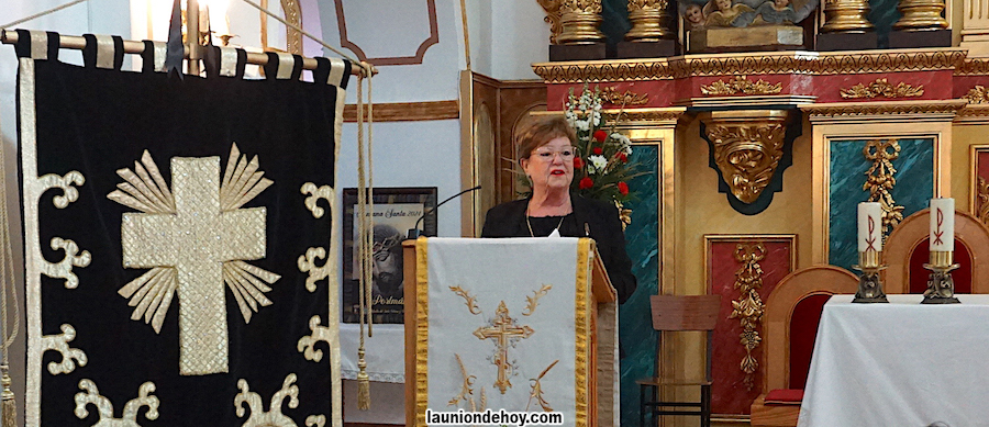 La pregonera de la Semana Santa de Portmán ofrece una amena y estructurada presentación en la que recuerda los episodios que motiva la celebración de estos días con comentarios paralelos relacionados con nuestra vida diaria, además de pedir a los cofrades que la preparación para estas fechas no sea sólo en asuntos técnicos y de ensalzar la esencia de los portmaneros.