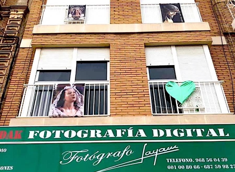 La petición efectuada ayer por el hermano mayor de la Ilustre Cofradía del Cristo de los Mineros respecto a lucir insignias de la Semana Santa en ventanas y balcones de la ciudad ha tenido respuesta, como muestra la fachada de la familia de Antonio Meroño que luce banderas junto al verde corazón que instalarón tras la petición del Ayuntamiento fechas atrás como señal de esperanza en la crisis sanitaria actual generada por el coronavirus.