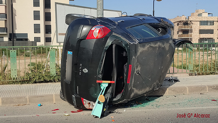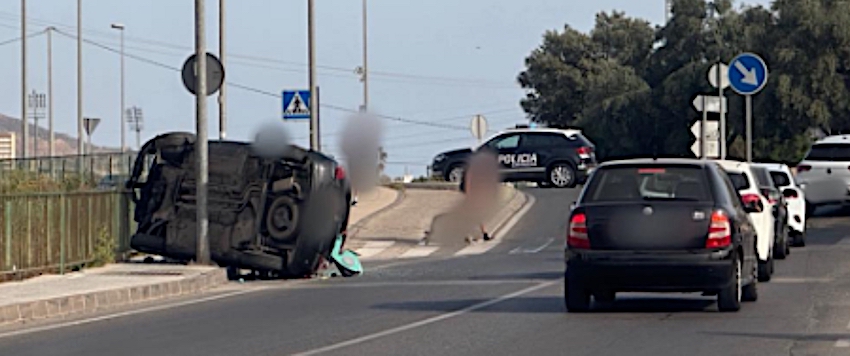 Un turismo se estrelló contra varios elementos del lateral de una vía de Cartagena (Sebastián Feringán), próxima a una rotonda, quedando volcado y con numerosos daños. Un agente del cuerpo policial unionense que estaba fuera de servicio por esa zona, acudió a auxiliar al conductor, quien poco después se daba a la fuga, siendo el propio municipal quien lo localizó más tarde.
