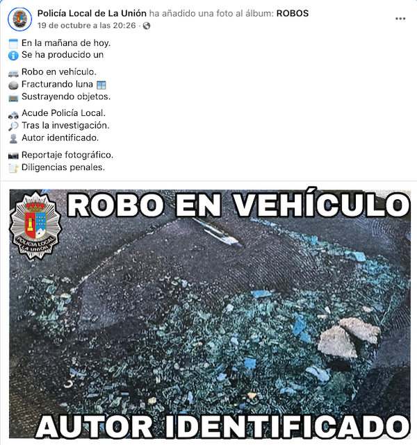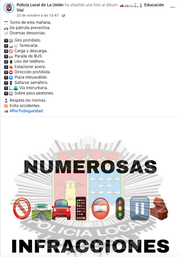 El perfil de la Policía Local de La Unión en Facebook tiene un acceso directo en el periódico de La Unión y su gente con una pestaña habilitada en la parte superior, junto a la cabecera del diario