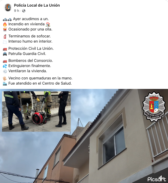Protección Civil de La Unión actuó ayer en el incendio en un domicilio originado en una olla y que generó quemaduras en la mano de un vecino. Hoy, por otro lado, bomberos han actuado en un garage de la entrada a la ciudad de La Unión por el humo generado por una mala combustión de una furgoneta.