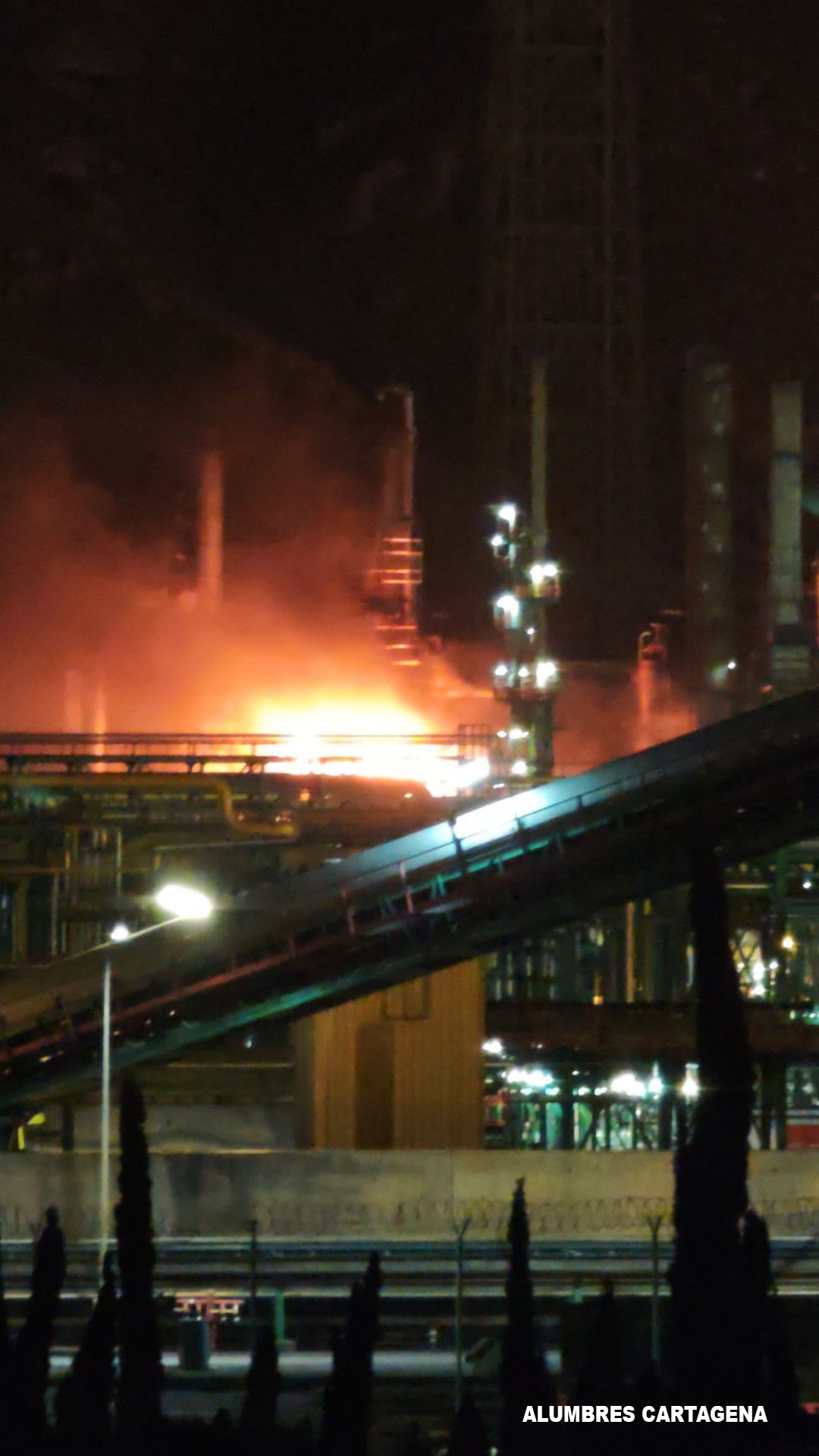 El fuego se inició a las 17.50 horas en el área más antigua de Repsol, activando la empresa enseguida sus servicios de emergencia. El origen, por motivos que aún se desconocen, ha tenido lugar en el tanque que transforma el crudo en gasoil (unidad de 'Topping 3'), produciéndose entonces una detonación. En un primer momento, por el viento, el fuego tenía la dirección de El Gorguel y Portmán. No hay heridos. La alcaldesa de Cartagena se ha desplazado a Escombreras y el regidor de La Unión se ha desplazado a Portmán. La alarma de protección civil, según informan las autoridades, tiene vigencia de 19 a 21 horas.