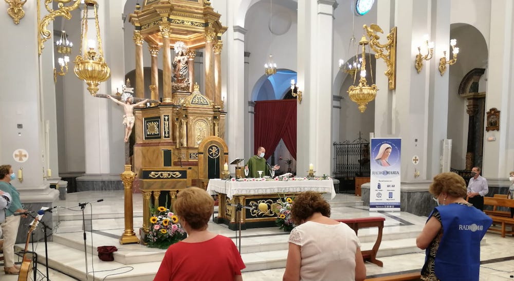 La emisora con cobertura nacional de contenidos centrados en las enseñanzas de la religión católica emitió la eucaristía oficiada por el sacerdote Ginés Luis Vicente el sábado pasado, a las 19.30 horas, desde la iglesia de Nuestra Señora del Rosario, que ofreció un gran aspecto en cuanto a presencia de asistentes.