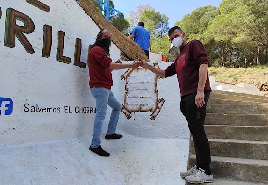 Iván Ruipérez y Paco Paredes se han dado la mano para plasmar en uno de los muros del paraje unionense un papiro con un sentido trono que invita a todo el que acuda a disfrutar y a cuidar este entorno de naturaleza.