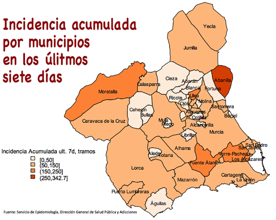 "... el problema lo tendrán otra vez los hosteleros". Las autoridades sanitarias autonómicas, ante las escenas de irresponsabilidad que se siguen viendo por distintos puntos de la geografía de la Región de Murcia, piden que no se baje la guardia ante el coronavirus y recuerdan que los bares y restaurantes están abiertos "porque se garantizan que se cumplen esas medidas sanitarias". La Unión ha registrado 28 nuevos casos en las dos últimas semanas, 18 de ellos en los últimos 7 días. A nivel regional, el último día deja 6 fallecidos, 190 nuevos infectados y 110 curados.