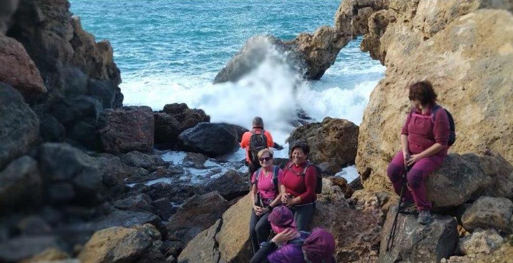 ... por tierras cartageneras, partiendo desde el estadio de fútbol Cartagonova para recorrer la rambla de Benipila, Algameca Chica (con visita al arco de La Amalia), la Podadera y la batería de Fajardo en una mañana agradable que ofreció al colectivo senderista unionenses estupendas visas de un Mediterráneo tranquilo, pero con resaca de los vientos del día anterior, que hacia esa espuma blanca que forma el agua al chocar con la costa.