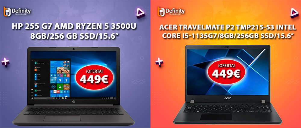 Por sólo 449 euros, y la posibilidad de financiarlo desde 45 euros al mes, tienes la oportunidad de adquirir de magníficos ordenadores portátiles de las marcas HP y acer. Es la gran promoción que lanza esta semana Definity Technology. Más información en www.definitiytech.es y acudiendo a la tienda física de la calle Mayor de La Unión (Murcia).