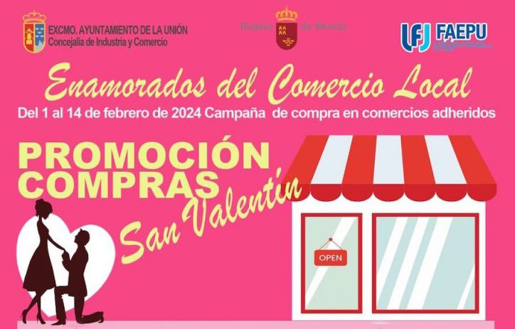 La campaña promovida por los gobiernos autonómico y local, con la colaboración de FAEPU, sigue desarrollándose en el comercio unionense con motivo de la llegada de San Valentín, próximo miércoles. Hasta entonces, todos aquellos que efectúen compras superiores a diez euros aumentan sus opciones de ganar un de los tres premios que se sortearán: una comida y una cena en sendos restaurantes para dos personas en ambos casos y una noche de hotel, también para pareja, en Almería. El sorteo se efectuará el sábado 17 en una fiesta que se montará en la plaza de Joaquín Costa.