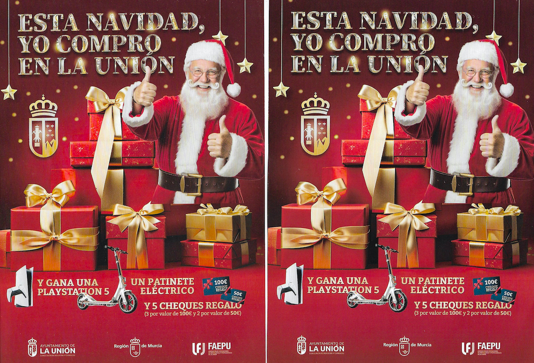 La campaña, que se desarrolla hasta el 3 de enero, le dareá la opción de tener buenos regalos a aquellos que efectúen compras por un importe igual o superior a 10 euros en los comercios del municipio adheridos a esta campaña, cuyo lema es: 'Esta Navidad, yo compro en La Unión'. Los premios son una videoconsola Playstation 5, un patinete eléctrico, tres cheques regalo por valor de 100 euros y dos cheques regalo por valor de 50 euros. El sorteo se llevará a cabo el 4 de enero, a las 18 horas, en la plaza de Joaquín Costa coincidiendo con la degustación del Roscón de Reyes.
